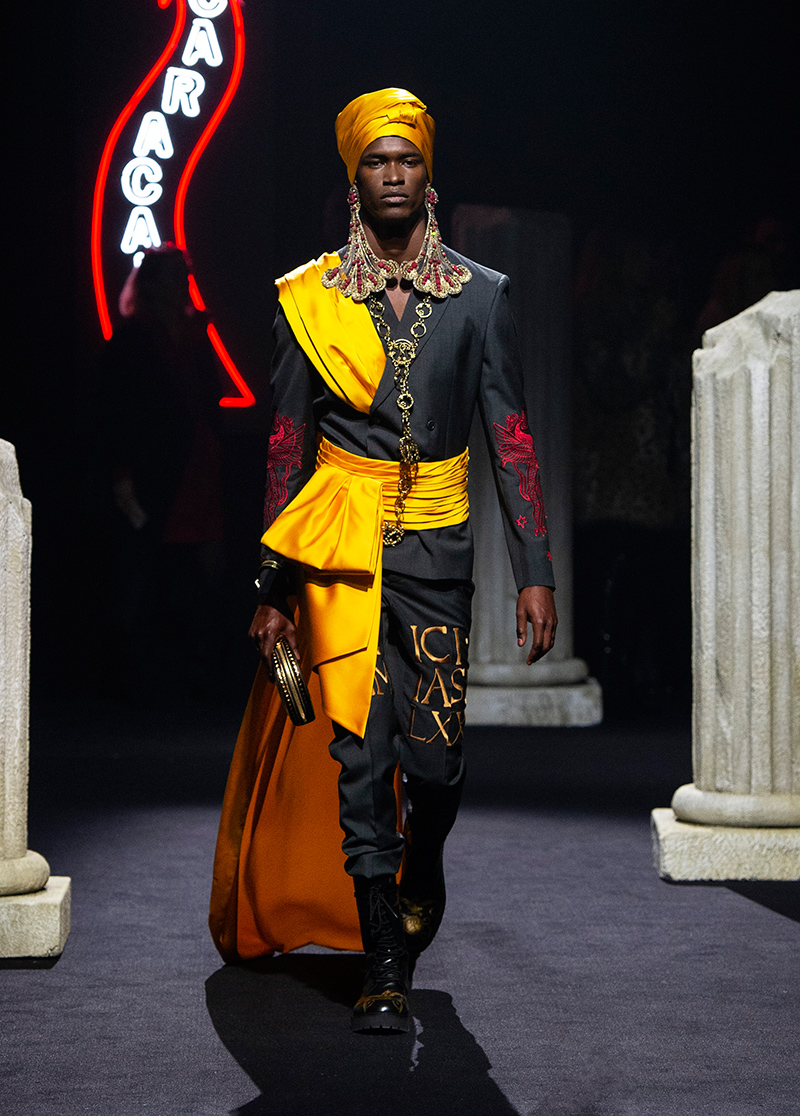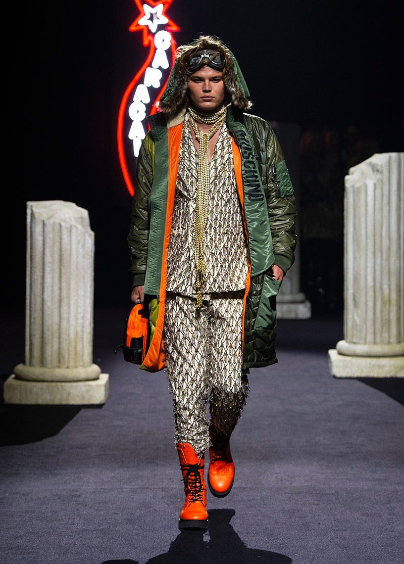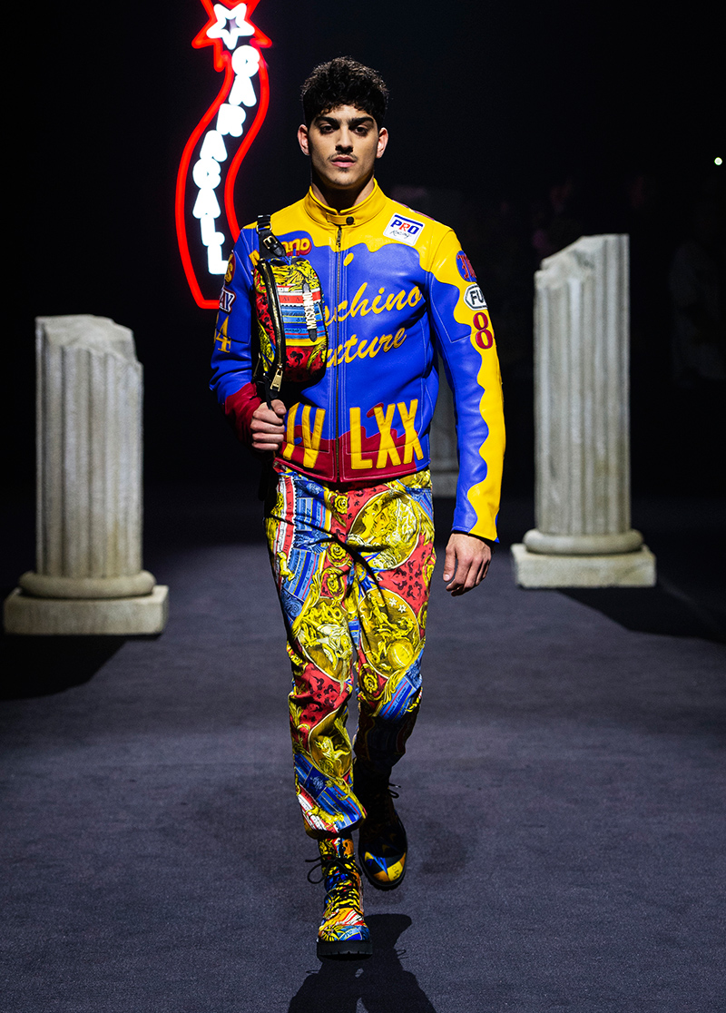 With the Fall/Winter 2019 collection at Rome’s Cinecittà studios, Jeremy Scott moved Moschino a step further into the midcult by tapping into Fellini’s “specifico filmico” and the brand’s ingenious nonconformity.