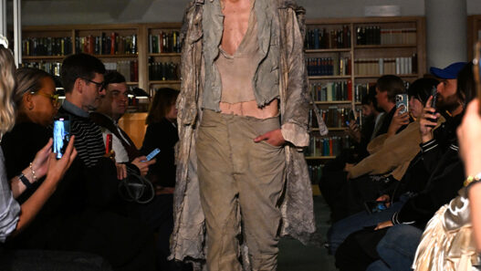 Titled “The Last Pangolin on Earth,” the collection drew inspiration from endangered species and the fading textures of a planet under siege. Carzana, a vegan designer known for his deeply personal presentations, used seaweed-based dyes and mordant techniques to create garments that appeared weathered by time and sandstorms. The result: silhouettes that felt both supernatural and grounded, echoing the genius of Mother Earth and the fragility of human impact.