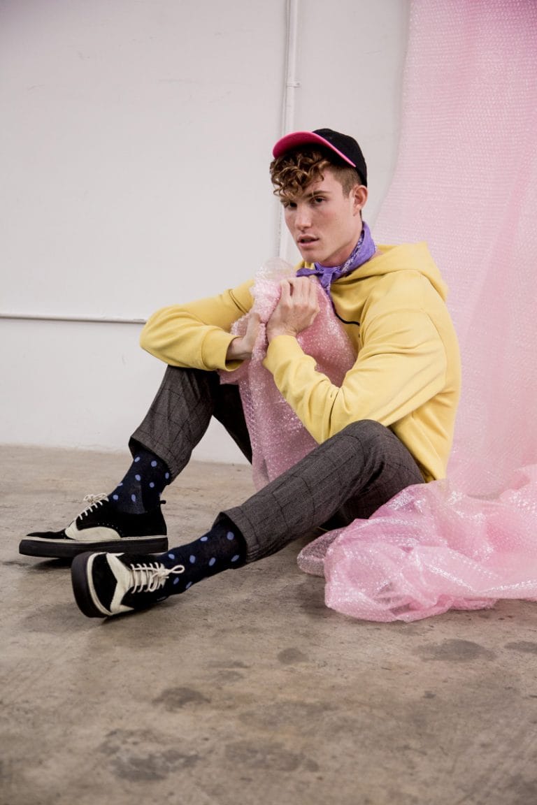 “Tarik Atallah at MSA Models shot by Kelly Nyland and styled by Levi Sawyer with pieces from John Lawrence, Pal Zileri, Valentino, Kenzo, Palm Angels, Converse, Christopher Kane, Acne Studios, Neil Ba…