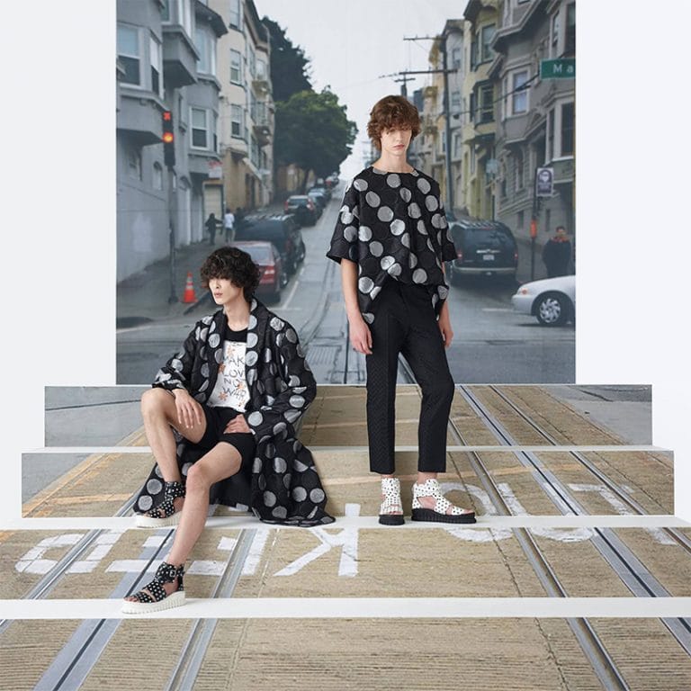 “Munsoo Kwon’s new Spring/Summer 2017 Collection was inspired by the designer’s personal memories from San Francisco, where he built his passion and dreams for fashion. Starting from the Haight Ashbury streets, the origin of hippie counterculture, the collection shares the unforgettable reminiscences from the city of love and peace.