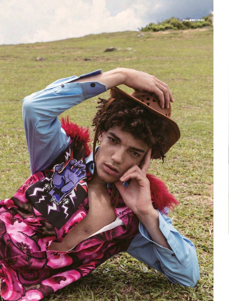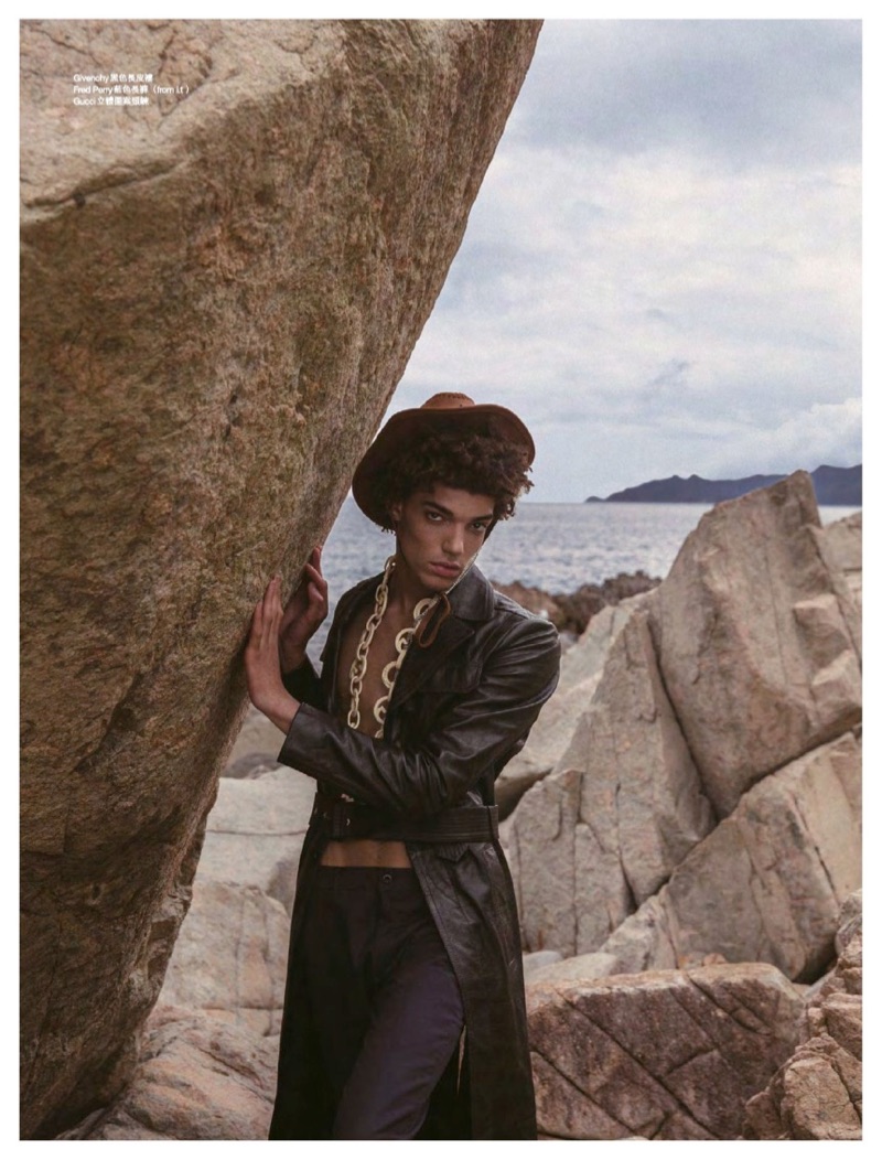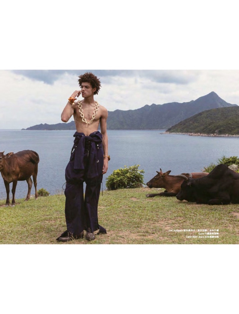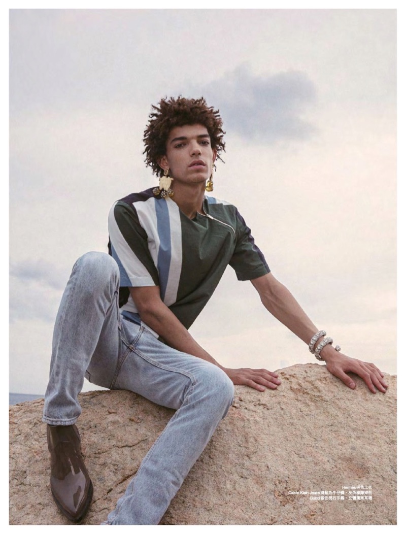 “Timothee Passy stars in an editorial for the July 2019 issue of Men’s Uno Hong Kong. Sporting bold designer looks, Timothee is photographed by 松尾先森. Venturing outdoors, Timothee embraces a variety of aesthetics, donning a wardrobe styled by Charles Wong. A fashion peacock for the day, Timothee wears everything from Gucci and Emporio Armani to Louis Vuitton.” – TheFashionisto.com