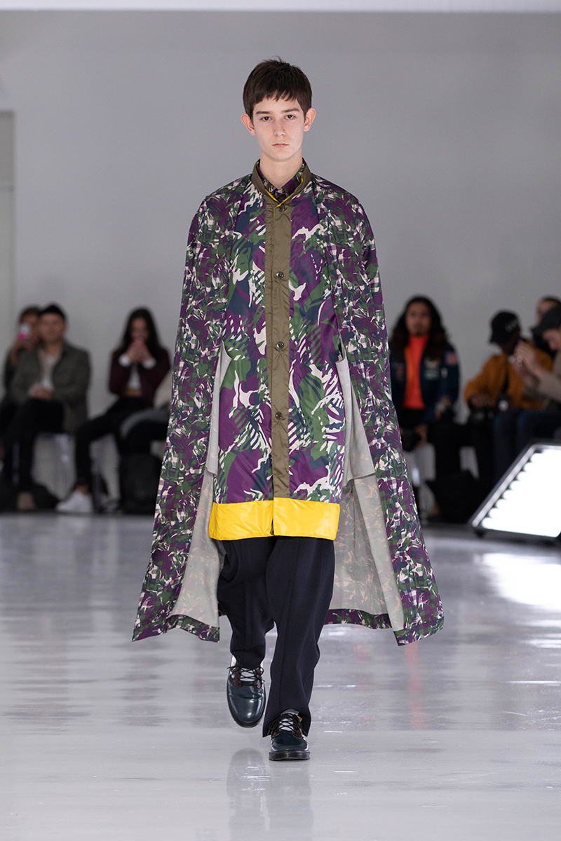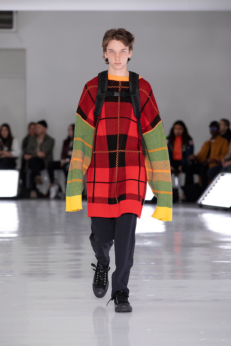 And if I had to take a wild one, I’d wager the theme was nomadic in nature. There was a devil-may-care sense of purity in this collection. An unburden-some freedom in the journey. Wherever it may lead. Backpacks were strapped to backs like appendages, shaved heads and Jesus hair provided a contrasting uniformity. Neon intarsia sweaters hung low like aloof teenagers. All at once it was monk, punk, cult; camo. It was cool.