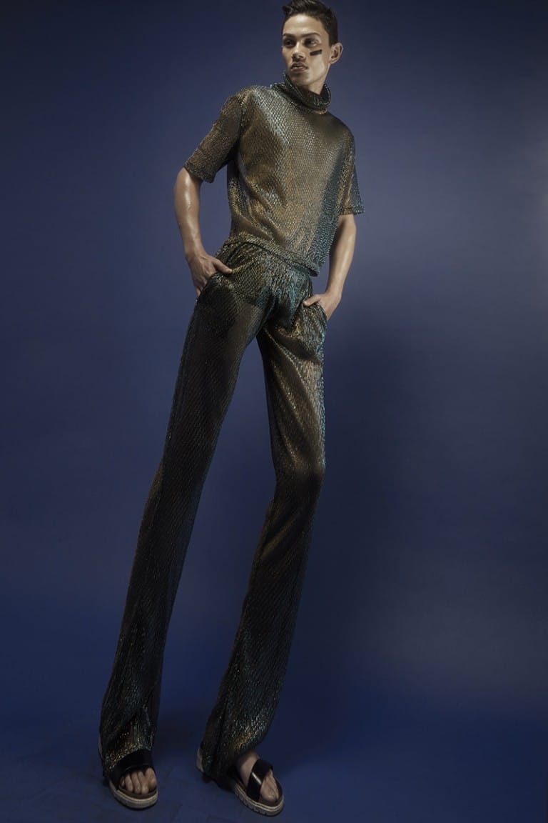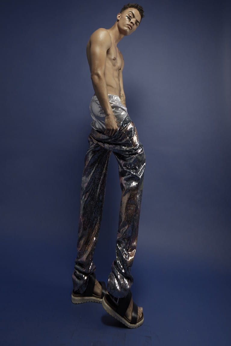 “Does size, height and girth really matter, can a straight man sleep with another man and still be straight, why don’t you feel sexy in sequence?” the designer asks questions that open up male sexuality and requests that men look at themselves.