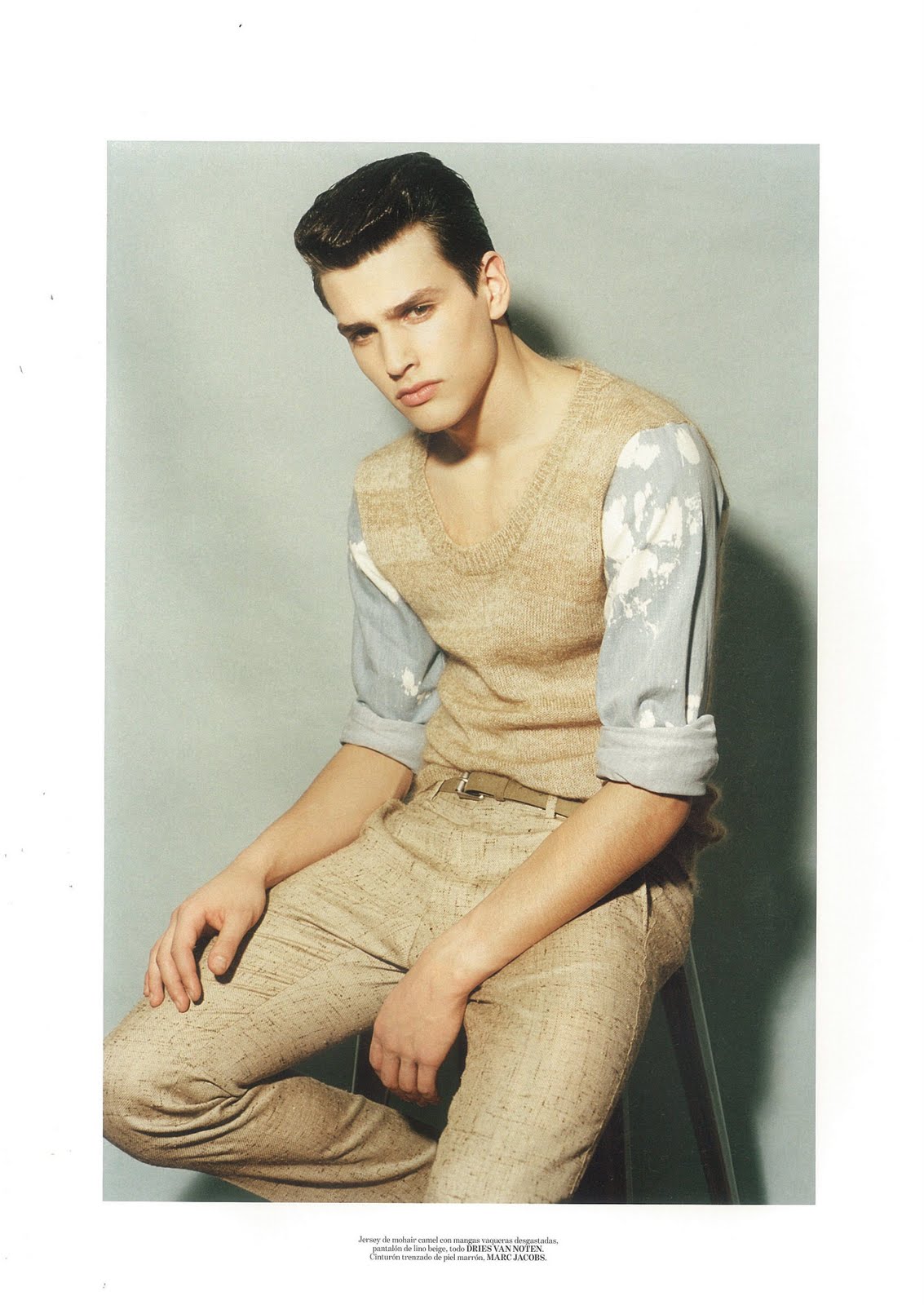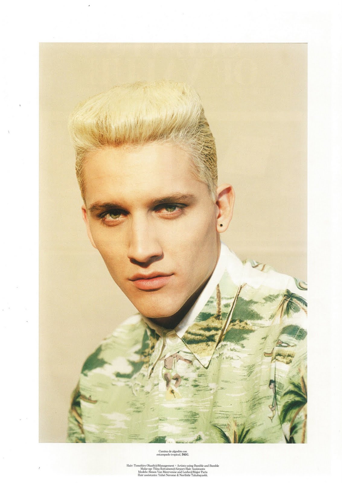 Major Paris’ Leebo Freeman and Simon van Meervenne are shot and styled by Bruno Staub and Laura Alcalde, respectively, for Hercules’ 10th anniversary issue. The boys were given a drastic hair change: the flat top. However, the mix of the retro hairstyle is in contrast with the sunbleached colors of the clothes, from the bieges to aquamarine, creating a solemn and almost reverential feel to the shots. Courtesy of – hommemodel.blogspot.com
