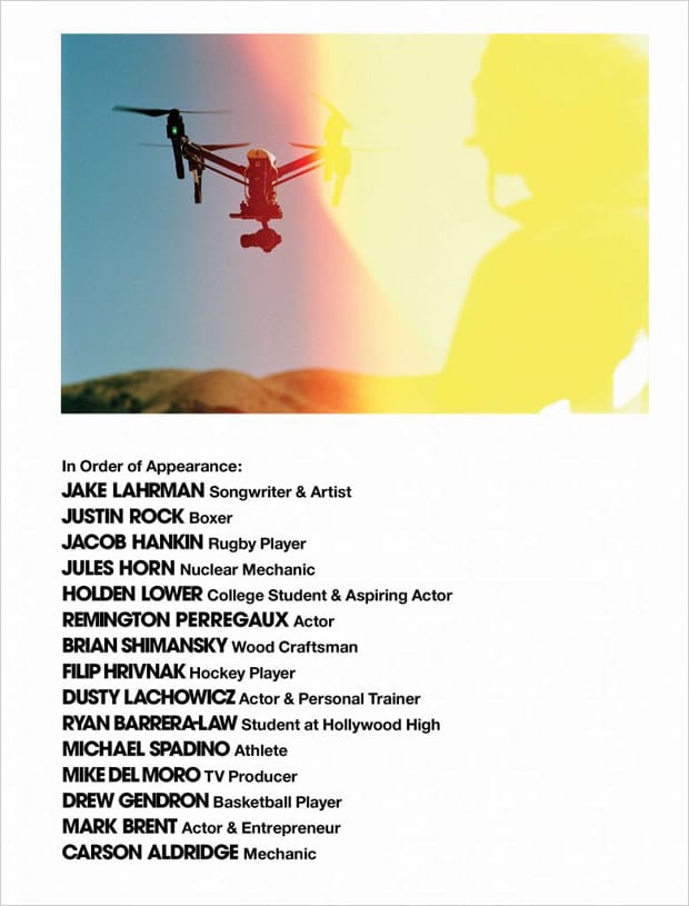 “VMAN Magazine enlists fashion photographer Bruce Weber to capture Cavalcade of Beginners cover story for their Spring Summer 2017 edition. Stars of the session are Jake Lahrman, Jules Horn, Carson Aldridge, Jacob Hankin, Drew Gendron, Dusty Lachowicz, Mark Brent, Remington, Brian Shimansky, Michael Spadino, Filip Hrivnak, Holden Lower, Justin Rock, and Ryan Barrera Law.