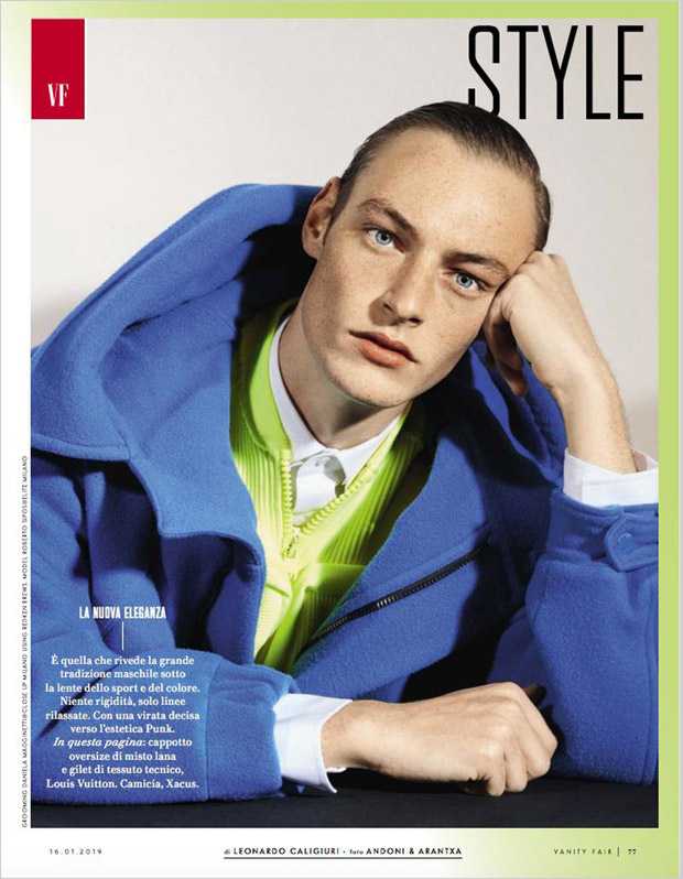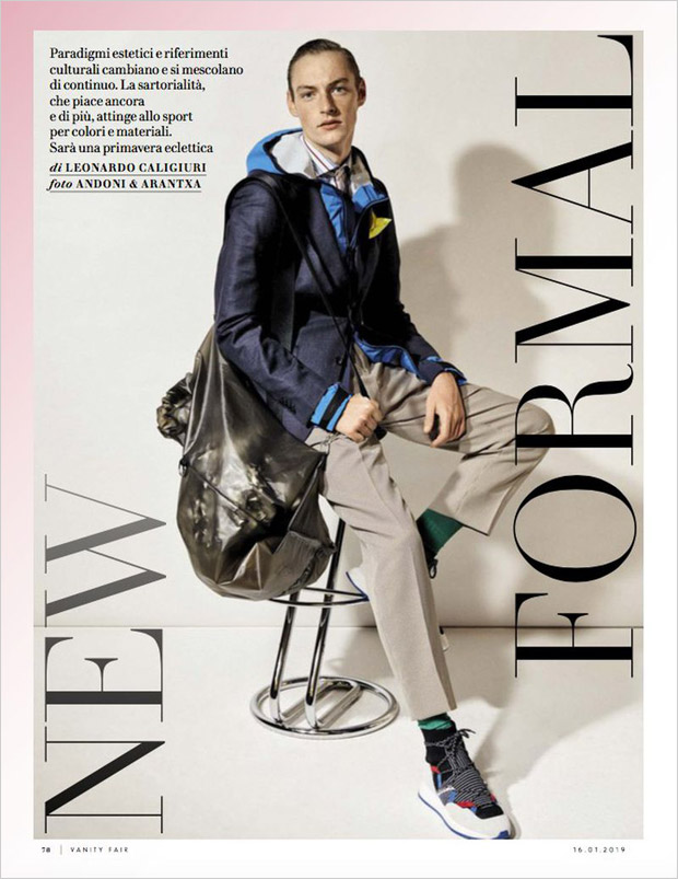 “Top model Roberto Sipos stars in New Formal story captured for Vanity Fair Italia‘s January 2019 edition by fashion photographers Andoni & Arantxa. In charge of styling was Leonardo Caligiuri, with hair styling from beauty artist Daniela Magginetti. Casting direction by Gisella Genna and Marina Moretti.” – Malemodelscene.net