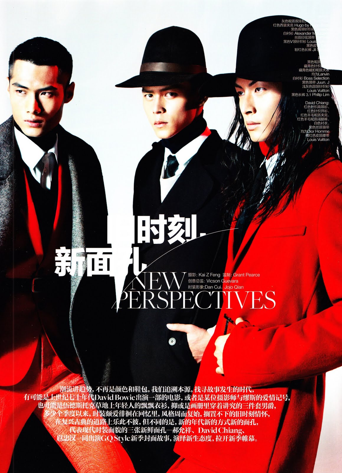 EDITORIAL: New Perspectives GQ Style China #2 – Fall / Winter 2011 Models Hao Yu Xiang, David Chiang and Hu Zhong Han Ph Kai Z Feng St Cui Dan & Jojo Qian Hao Yu Xiang appears on the cover of GQ Style…