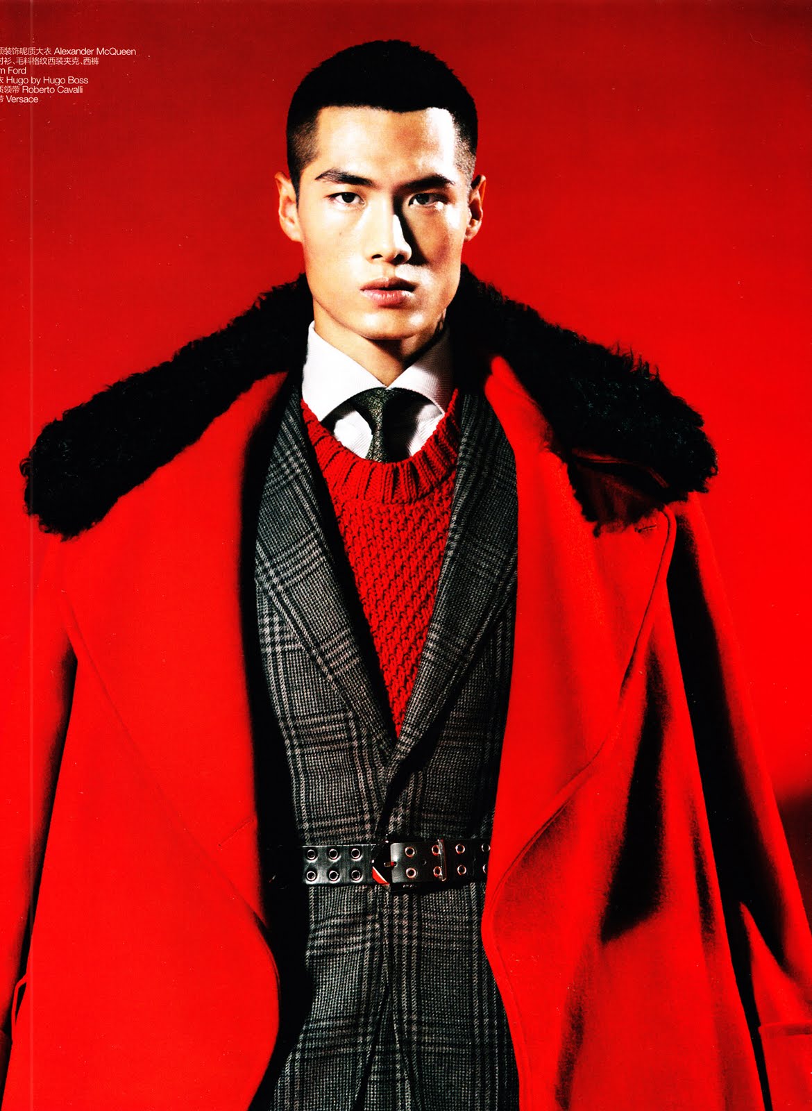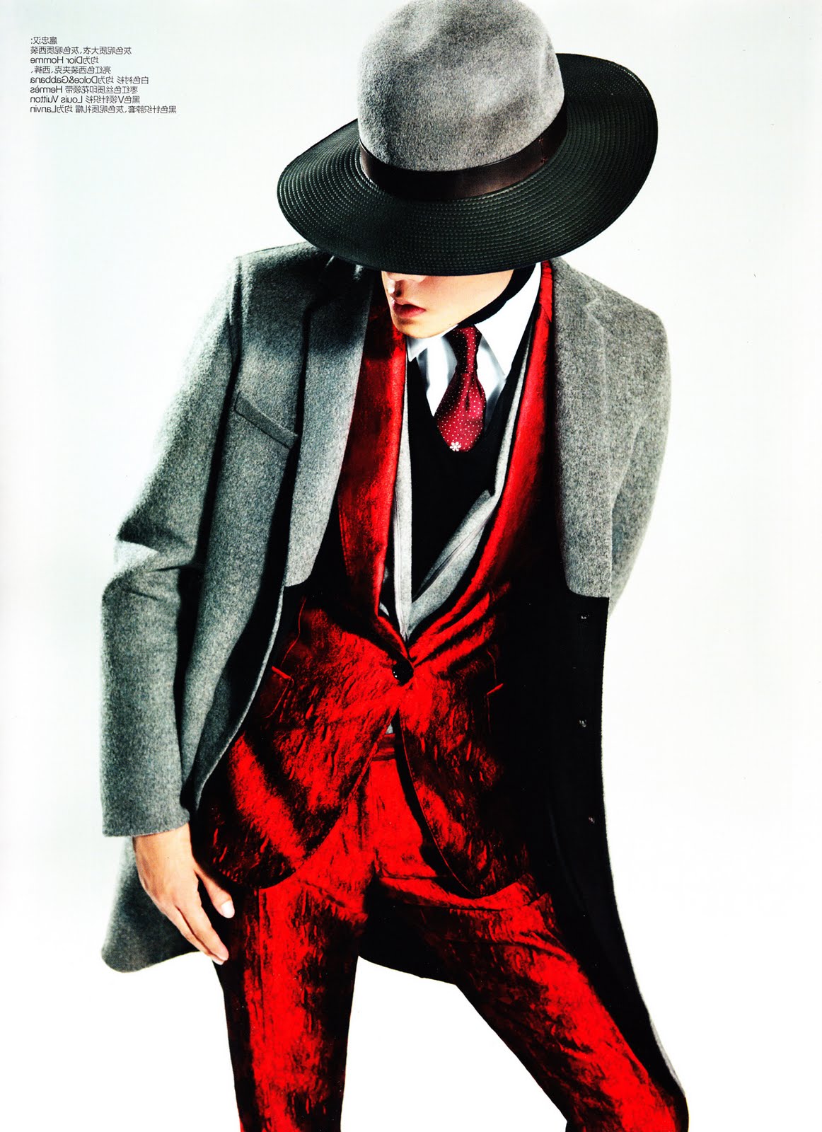 Hao Yu Xiang appears on the cover of GQ Style China’s second issue and in the following cover editorial shot by Kai Z Feng, Hao Yu Xiang is joined by David Chiang and Hu Zhong Han. Cui Dan and Jojo Qian style the models in bright, high-contrast looks featuring wide-brimmed hats and jolts of blood-red. Courtesy of – hommemodel.blogspot.com