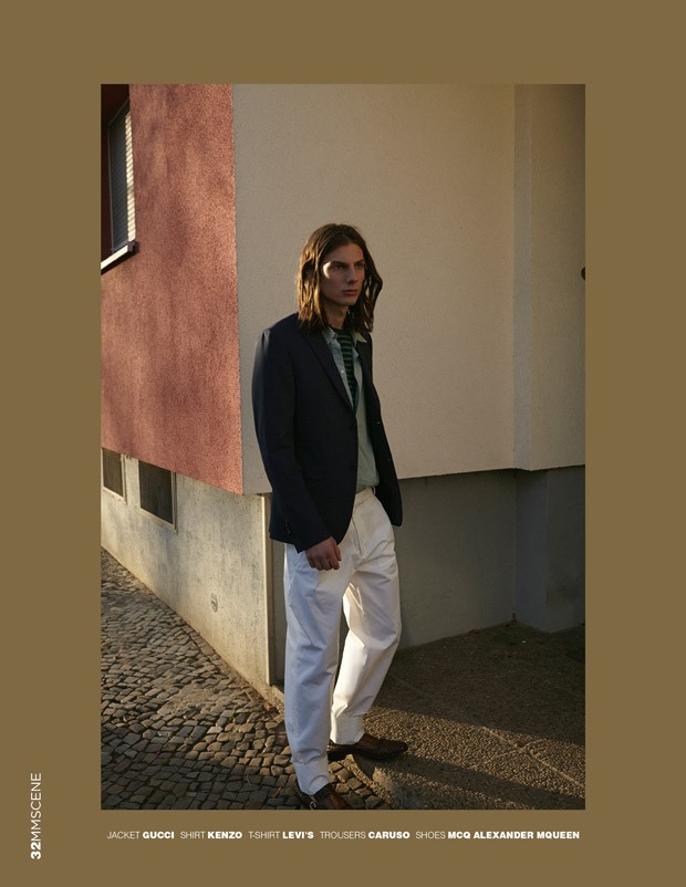 For the session Niclas was styled in selected looks and accessories from Bruno Cuccinelle, Samsoe Samsoe, Levis, Emporio Armani, Bottega Venetta, Z Zegna, Balmain, Versace, Prada, Santoni, Vivenne Westwood, Paul Smith, Michael Kors, Alexander Wang, Sherman, Filip K, Uniqlo, Gucci, Kenzo, Caruso, and MQ Alexander MQueen.” – Malemodelscene.net