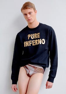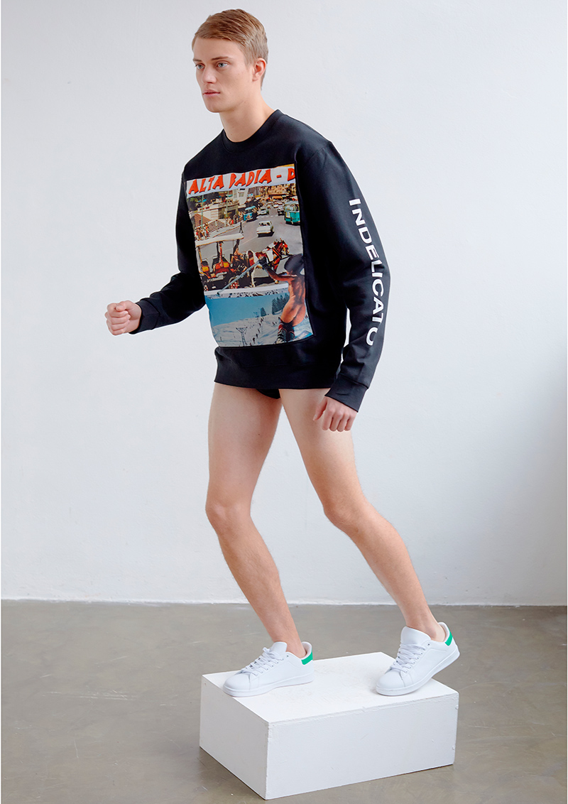 “The Fall/Winter 2019 collection by Nicola Indelicato was inspired by the Jean-Daniel Cadinot’s 1985 movie Classe de Neige. The designer imagines a bunch of young boys on a mountain trip. A warm place, a sauna, and many bedrooms where to live the first love experiences, and not only this… experiences of the body and physicality to eternalize a moment, a memory.