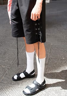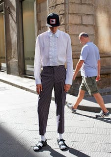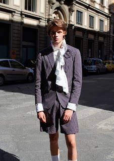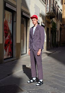 “Through this collection, we follow an updated interpretation of what would be the wardrobe of a young boy landing in Italy and how it would evolve while he discovers the Italian taste and the “Napolitano” tailoring. Therefor the choice of mixing streetwear’s items as t-shirts and nylon full look, to represent the youth and the comfort needed of a tourist, and more dressed up and constructed garments.” – FY Magazine.es