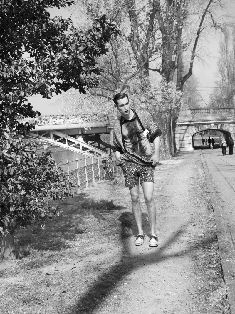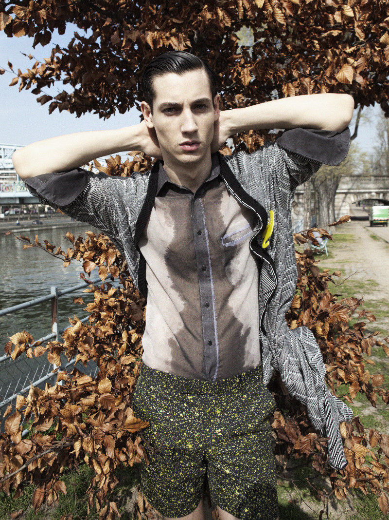 Parisian Stroll–Markus Lambert (Twin Shot Photography) photographs Bananas model Nicolas Ripoll for new French magazine That. Captured outdoors in a playful mix of suiting and separates from the likes of Kenzo, Nicolas is outfitted by Marcell Naubert (Bigoudi). / Makeup by Jean Charles Perrier (Airport Agence Paris). Courtesy of – thefashionisto.com