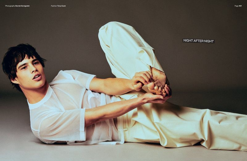 “Louis Baines is back in the spotlight. The British model pours on the charm as he stars in an editorial for Man About Town. Embracing eclectic style, Louis takes to the studio for a shoot with photographer Bartek Szmigulski. Rocking bold fashions, Louis is styled by Tony Cook. Front and center, Louis is fearless in pieces from the likes of Dsquared2, Louis Vuitton, and Gucci.” – TheFashionisto.com