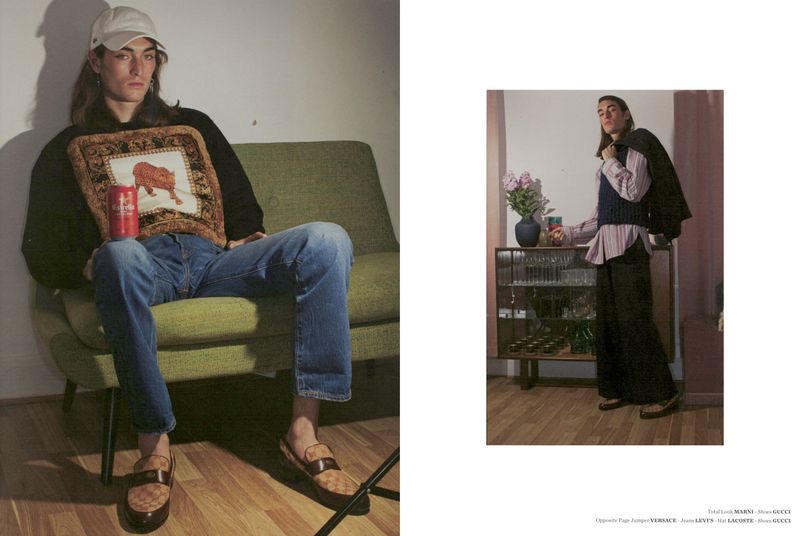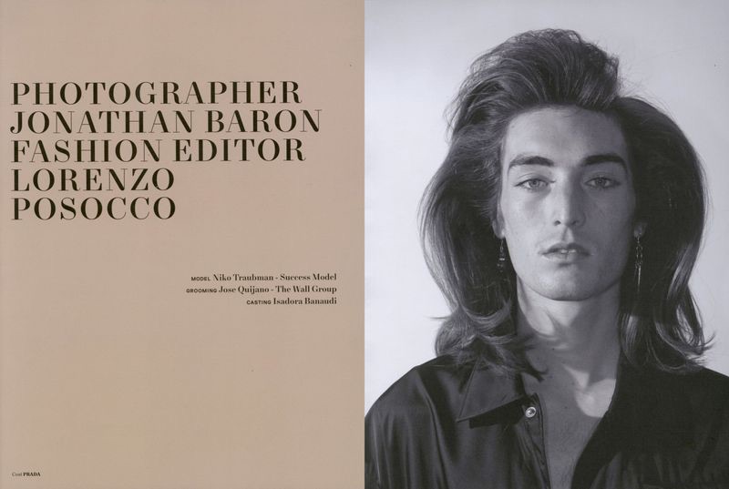 “Niko Traubman is picturesque as he appears in an editorial for The Greatest. Exuding a retro-infused attitude, Niko poses for the lens of photographer Jonathan Baron. Meanwhile, Lorenzo Posocco styles the up and coming model for the story. Front and center, Niko wears an array of labels that includes Maison Margiela, Stella McCartney, and Gucci.” – TheFashionisto.com