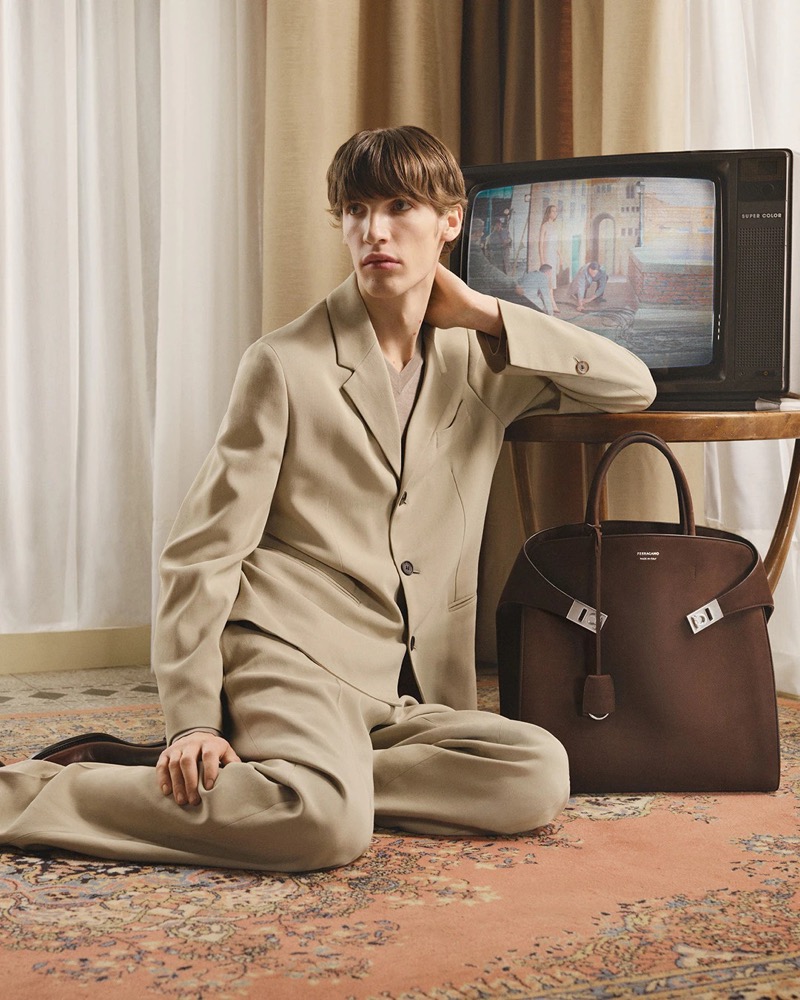 Nino Gherzi Strikes a Pose for Ferragamo’s Pre-Fall 2025 Collection