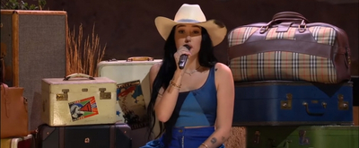 “Noah Cyrus appeared on The Late Late Show to perform her recent single “July,” a folk rock-inspired number she released over the summer. Cyrus took her cues from the West in her performance, which saw her seated on a pile of luggage on a set that evoked the grassy outdoors.