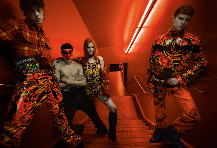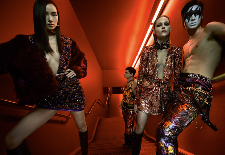 “First look at DSquared2‘s Fall Winter 2019.20 advertising campaign featuring models Andreas Wolf, Serge Sergeev, Alton Mason, Keenan Gyamfi, Noah Luis, and Louis Baines joined by supermodels Mariacarla Boscono, Fei Fei Sun, and Sasha Pivarova. In charge of photography were Mert Alas and Marcus Piggott, with creative direction from Giovanni Bianco, set design by Emma Roach, and casting direction by Piergiorgio Del Moro.