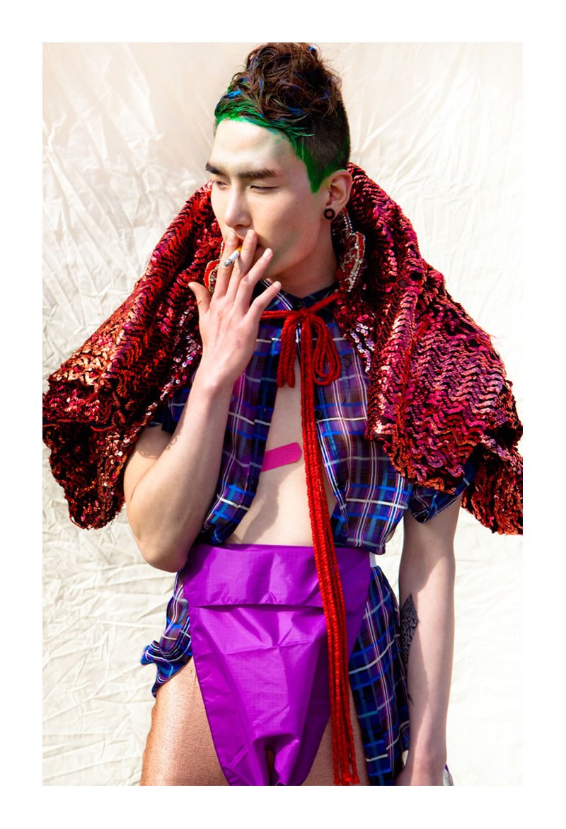 “Christopher Starbody photographs Red’s breakout star Noma Han for a VNFOLD story entitled Last Day Parade. Styled by Rich Aybar, Noma’s quirks are matched with a colorful offering that boasts a bold array of garments that include Dries Van Noten, Acne and Giorgio Armani.” -Fashionsto