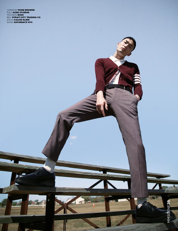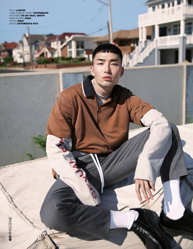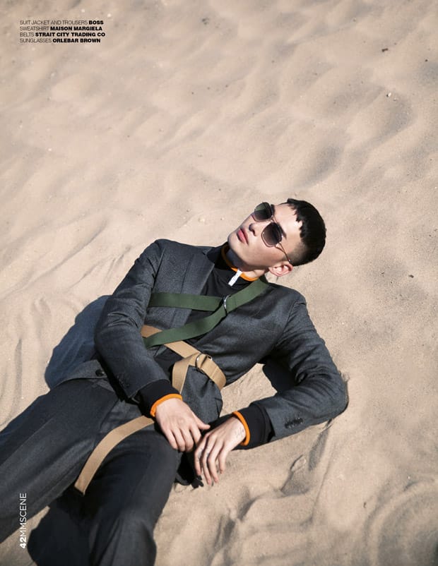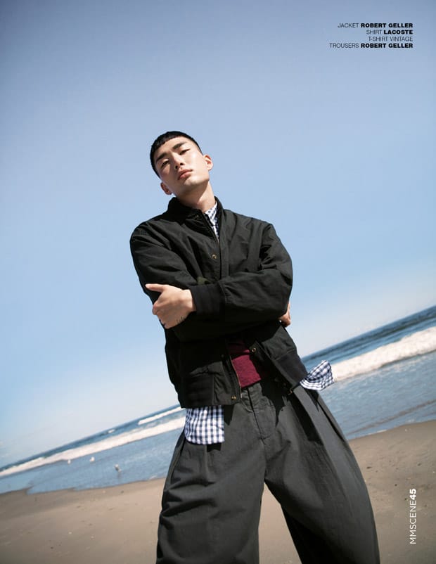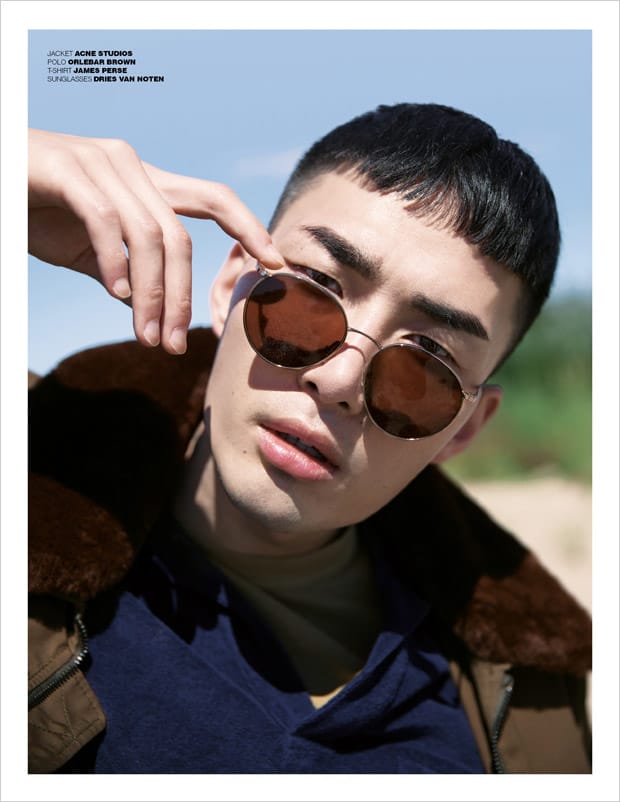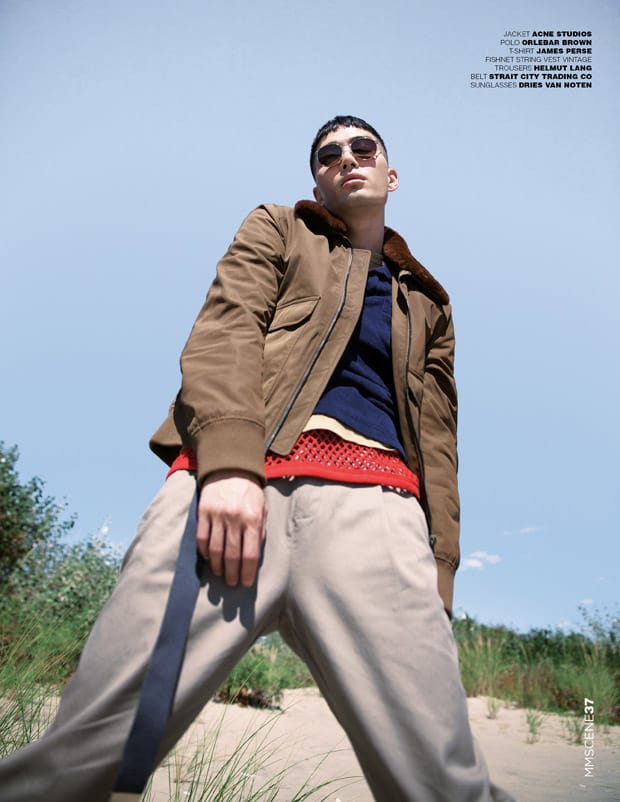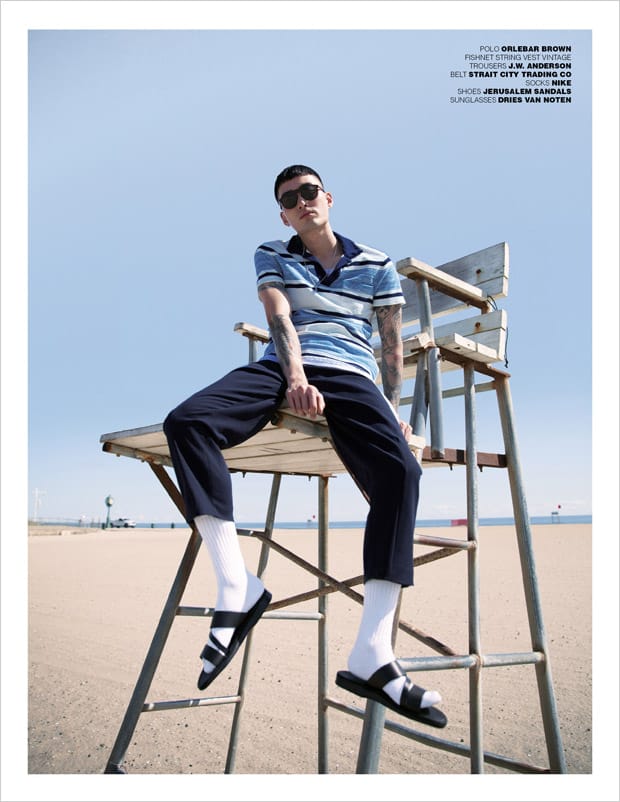 For the Blue Skies cover story the handsome Noma is wearing selected looks and accessories from brands such as ACNE Studios, Orlebar Brown, James Perse, Helmut Lang, Strait City Trading Co, Dries Van Noten, Thom Browne, BOSS, Calvin Klein, Saturdays NYC, J.W. Anderson, Nike, Jerusalem Sandals, Lanvin, Vetements, PS by Paul Smith, Onia, Robert Geller, Lacoste, Maison Margiela, and Loewe.” – Malemodelscene.net