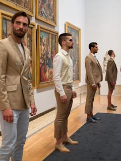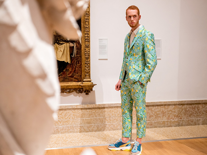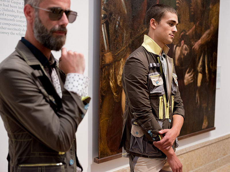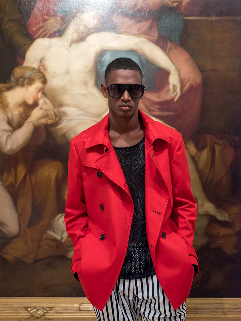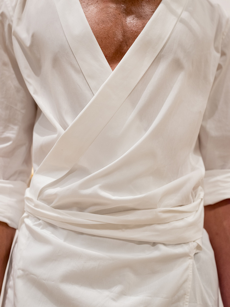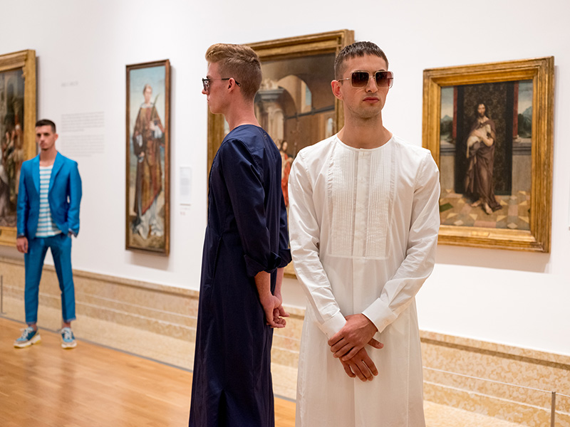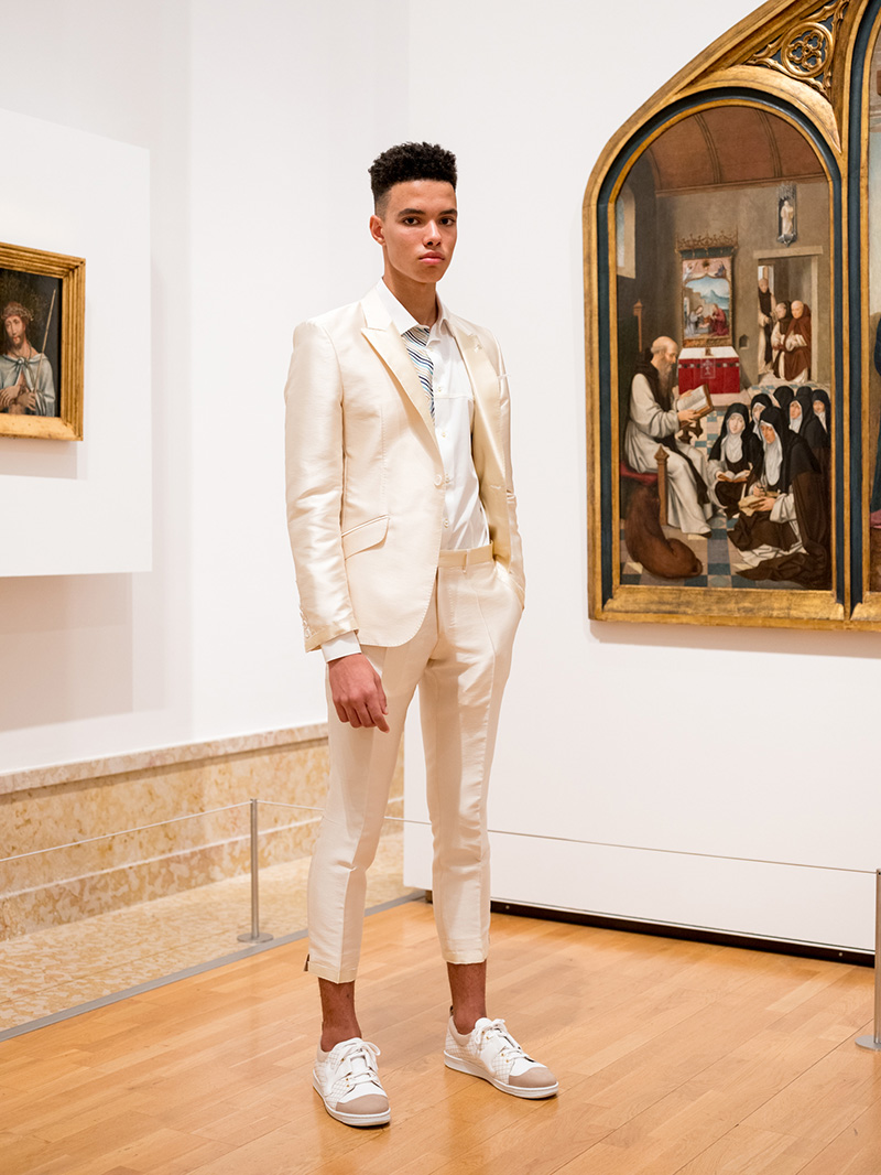“Nuno Gama presented his Spring/Summer 2019 collection in Lisbon. The style has been created through the overlaying of multiple references, divided between a return to formal wardrobe and a more cool attitude in relation to self-comfort, re-creating new looks, “without geographic limitations and by being enriched from the endless experiences shared through this time in the world“.