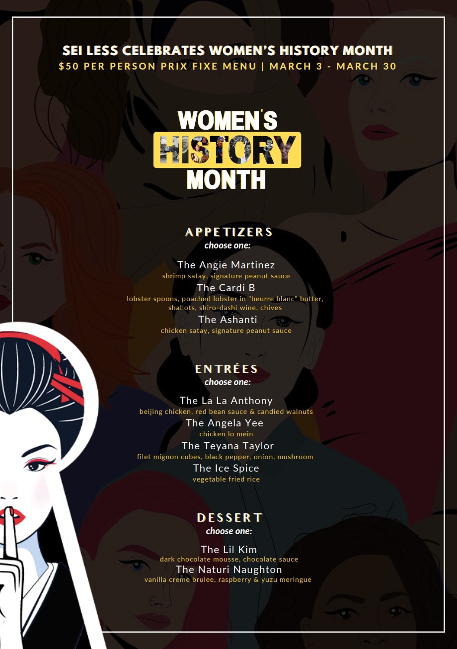 NYC Restaurant Tributes Cardi B, Ice Spice & More With Women’s History Month Menu. Sei Less is the name. Honoring the most influential women in music…