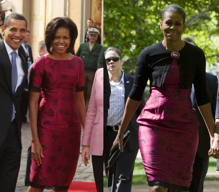 No spam. Unsubscribe anytime.Michelle wore a resurrected (Easter joke!) Thakoon dress which she previously wore back in 2009 (see below), according to the Mrs. O blog. (Mrs. O also reports that this is the second Easter in a row she’s worn Thakoon. We’ll leave it to the theologians to figure out the significance of that.) Malia and Sasha both went Mad Men in full-skirted dresses and ballet flats. The only real fashion misstep we can see here is that Secret Service woman in the unfortunate belt buckle behind Malia. But she is obviously working, so we’ll give her a pass, especially since she is likely packing a big gun somewhere under that buckle. – fashionista.com