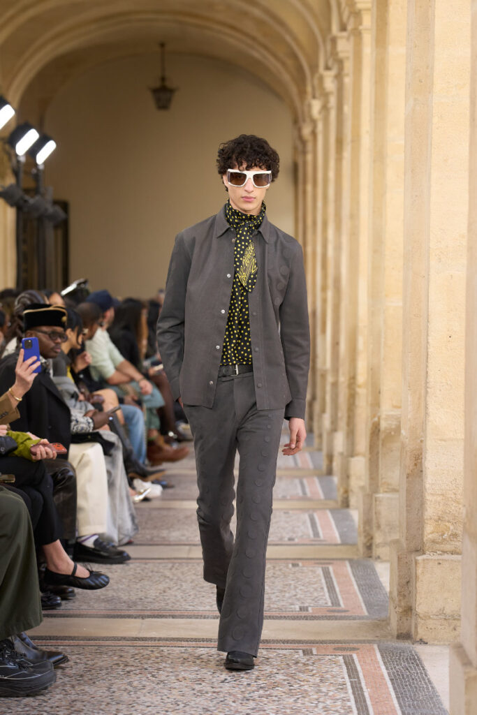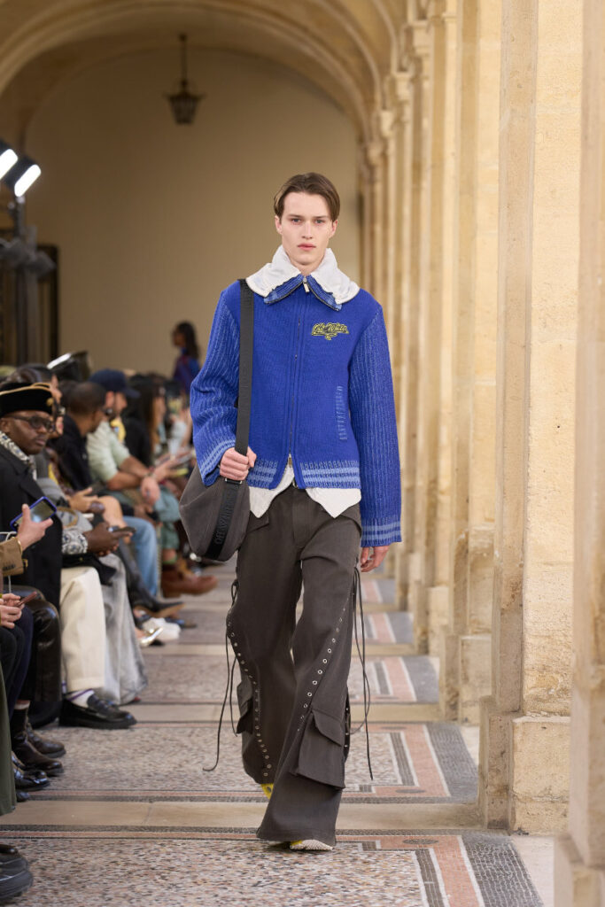 The season pulses with improvisation: flared denim, sculpted tailoring, sensual womenswear, and street‑leaning pieces that echo Davis’s boundary‑breaking style. It’s fashion as rhythm, attitude, and transformation — a conversation between jazz, rock, funk, and the Off‑White universe.