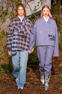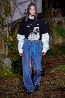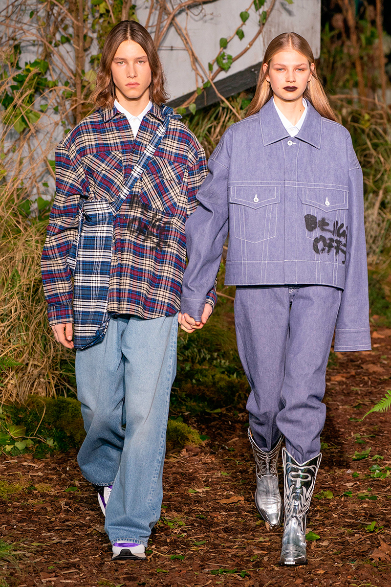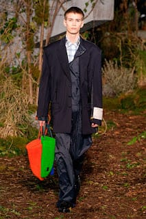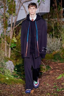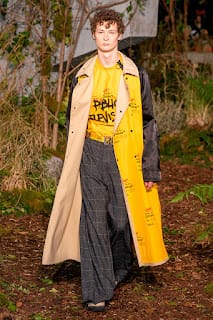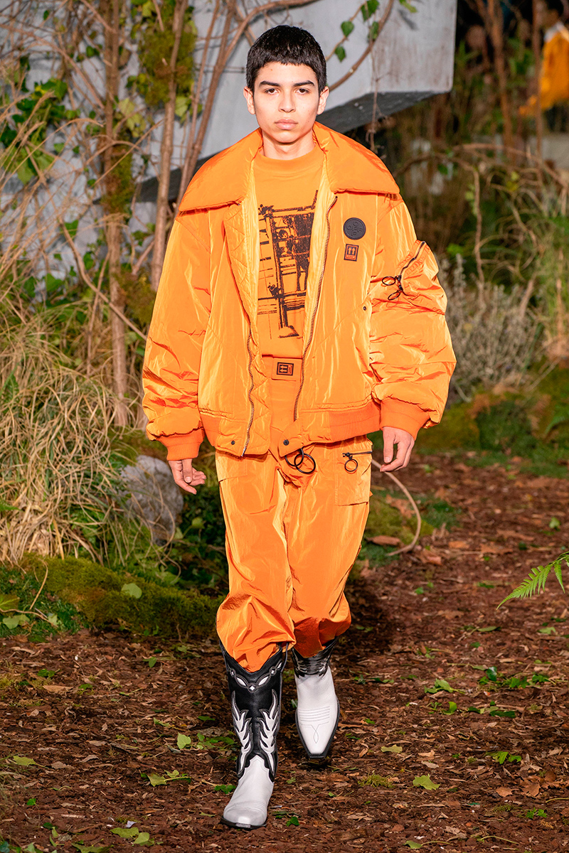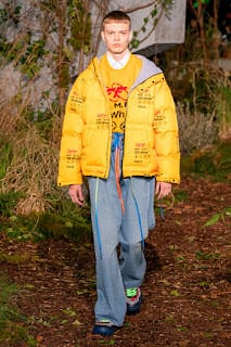Abloh’s time at Vuitton has also rubbed off with more tailored pieces worked among high-waisted drawstring denim trousers with a YK2 flair. Gone are any hints of a pastel palette opting for acid yellows, oranges, and an alien green. If anything, the green rush is in full swing.” – FY Magazine.es