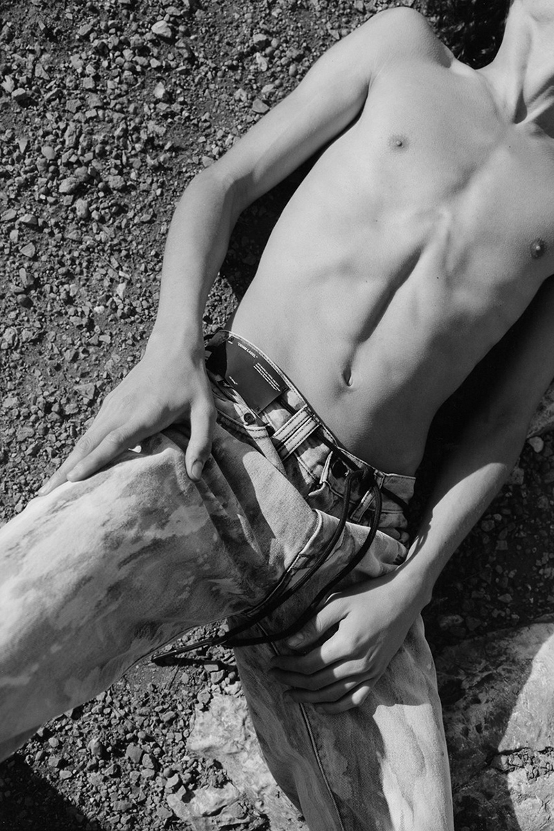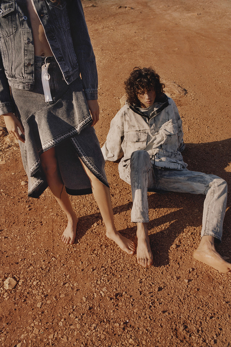 “Off-White takes model Diogo Guerreiro to the desert for its resort 2019 denim campaign. Shot by Ivan Ruberto.” – FY Magazine.es