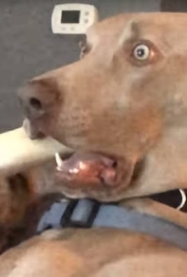 Cooper the weimeraner was sitting next to his owner on their sofa when something apparently caught his attention.