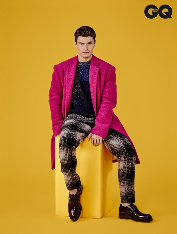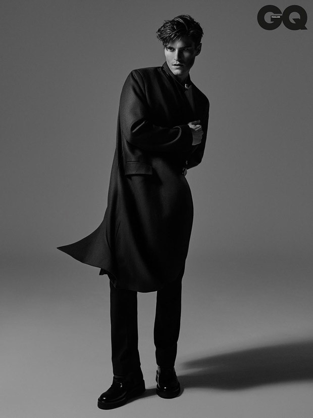 “Top model Oliver Cheshire takes the cover story of GQ Thailand‘s September 2015 issue captured by fashion photographer Sarah Brimley with styling from Pop Kampol. In charge of grooming was Shukeel Murtaza. Oliver is wearing pieces from Prada (on the cover), Paul Smith, Alexander McQueen, Dolce&Gabbana, Joseph, Burberry Prorsum, Topman Design, Richard James, and Casely Hayford.” – Malemodelscene.net