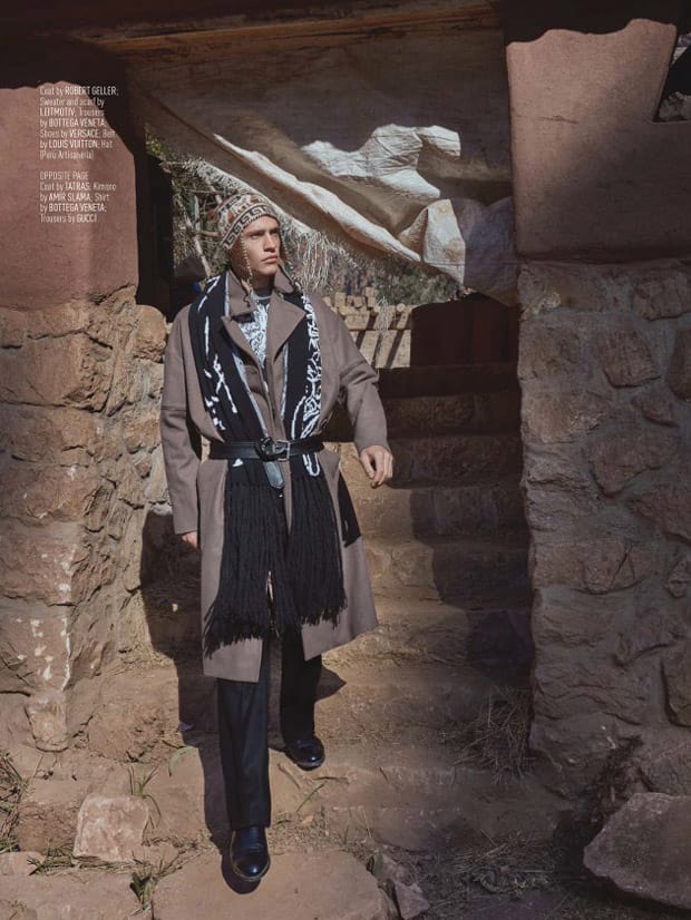 “August Man Malaysia enlists top model Oliver Stummvoll to star in Chasing After Inca Gods story captured for their latest edition by fashion photographer Greg Swales. Styling is work of Giorgio Ammirabile, who for the session selected looks from the likes of Bottega Veneta, Versace, Gucci, Kenzo, Paul Smith, and Emporio Armani among other.” – Malemodelscene.net