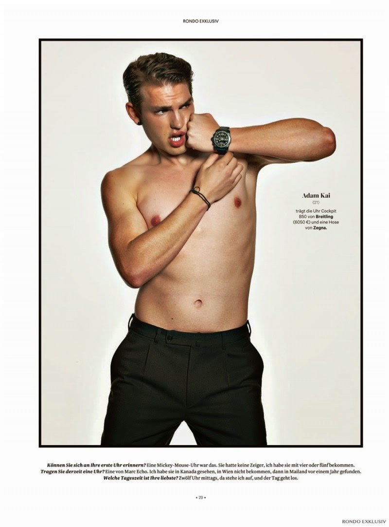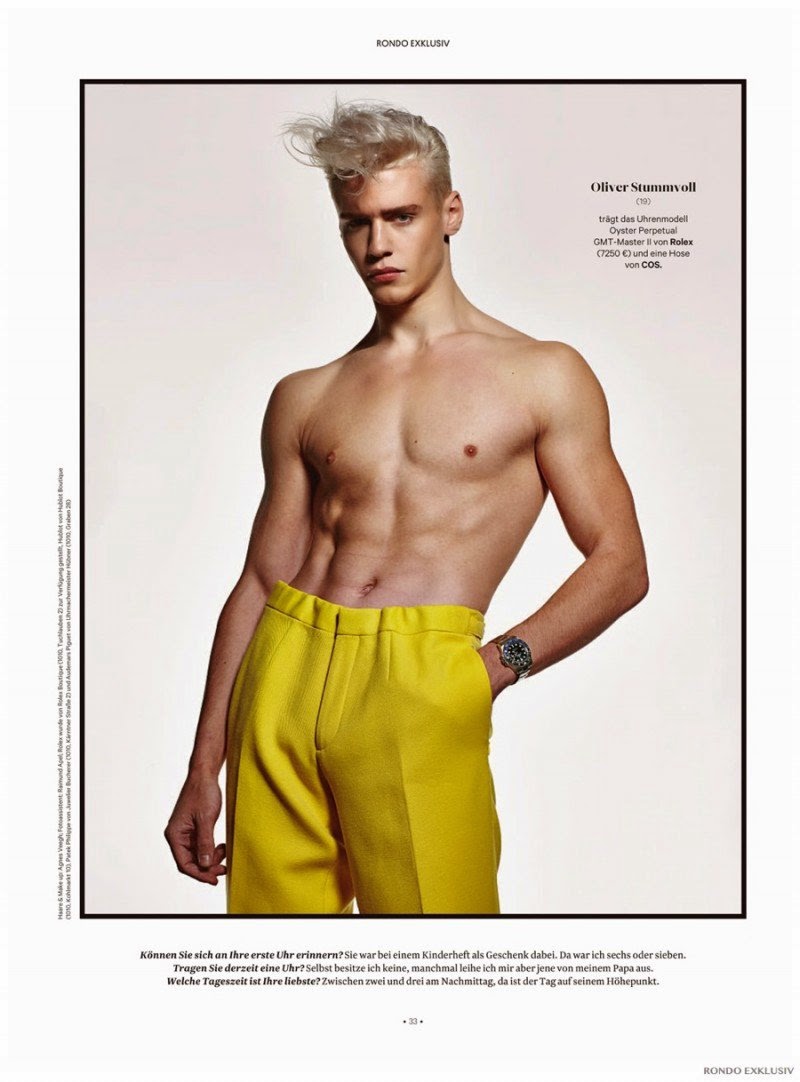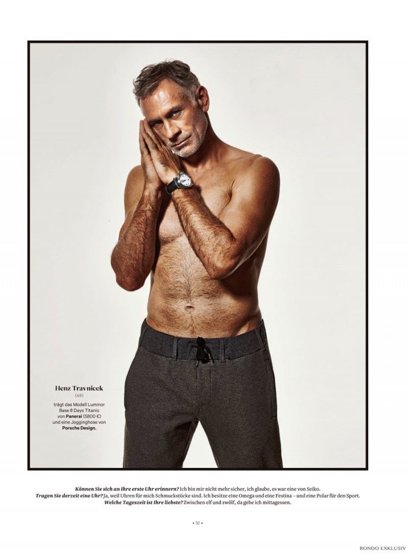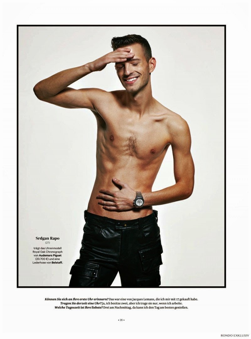 Mann An Zeiger-Oliver Stummvoll, Srdgan Rapo, Manuel Stummvoll, Adam Kai and Henz Travneek come together for a November shoot from Rondo Exklusiv. Posing shirtless in trousers from Porsche Design, Belstaff and other fashion brands, Wiener models and Austria’s Next Top Model contestants link up with photographer Irina Gabrich and stylist Stephan Hilpold. / Grooming by Agnes Veegh. Photo assistance by Raimund Apel. Courtesy of – thefashionisto.com
