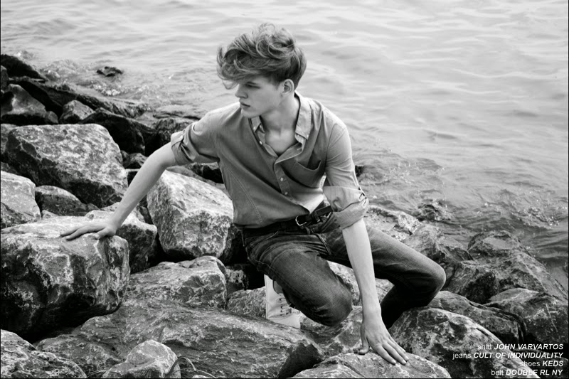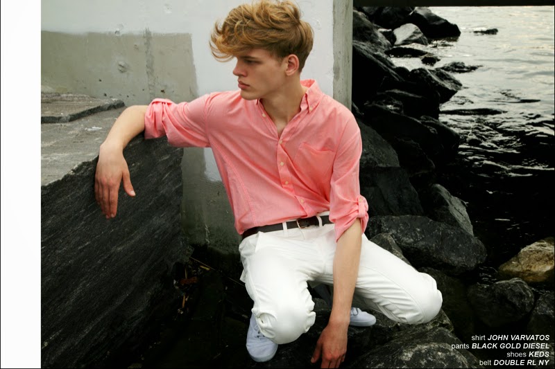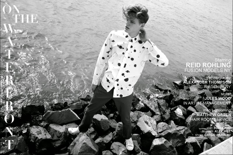 “On the Waterfront–Fusion model up and comer Reid Rohling lends a boyish quality to a new story from Ponyboy. Connecting with photographer Alexander Thompson, Reid is captured in summer fashions that take on a certain ease. Combined with a colorful nature and playful prints, Reid’s wardrobe is a smart display as styled by Jules Wood. / Grooming by Matthew Green.” – The Fashionisto