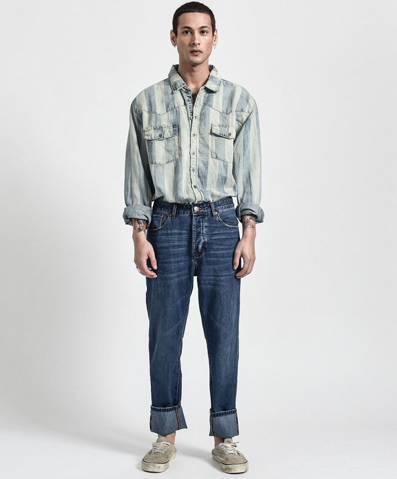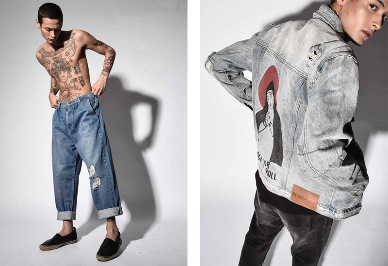 100% Organic denim, rinse washed with a red vegetable dye. Core denim has 4 fits. Super skinny, skinny, relaxed and relaxed tailored. Across jeans and shorts. Also this season, the brand has introduced the “Artist collaboration” T-shirt capsule collection, featuring local and international artists. All Tees are cut in a heavyweight organic cotton, in one classic vintage fit that has been softly washed.