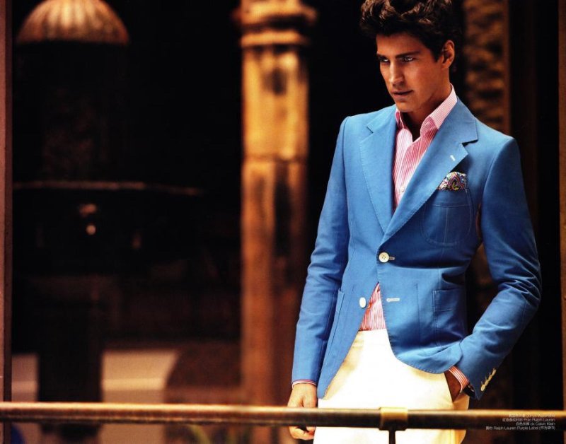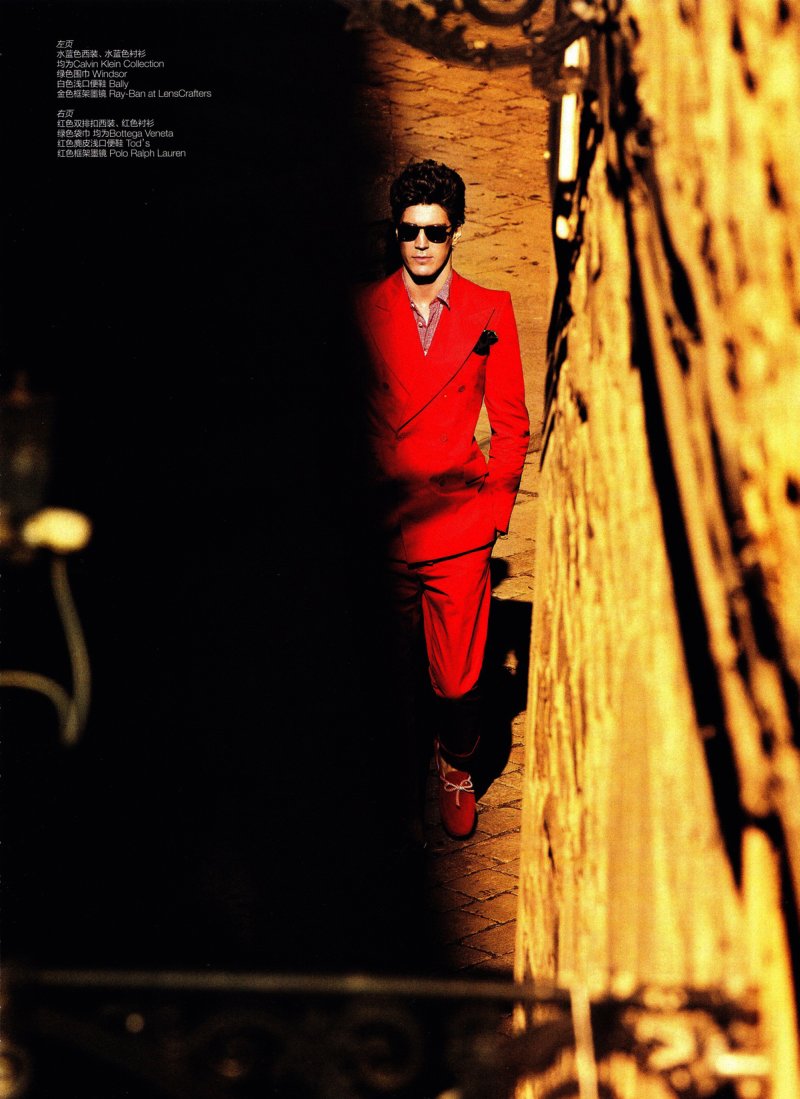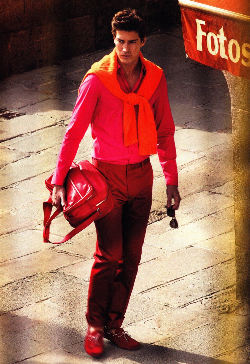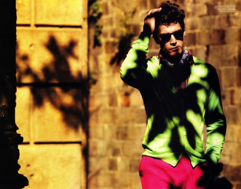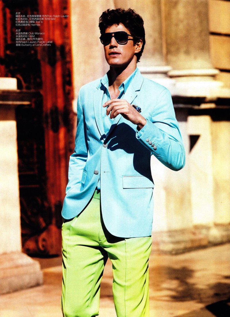 ‘Giampaolo Sgura and Grant Pearce’s latest work pair the familiar duo together with leading model Oriol Elcacho for a story in color blocking. Appearing in the May edition of GQ China, Oriol takes to the streets in an array of colorful suiting expertly pieced together by Pearce.’ courtesy of thefashionisto.com