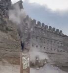 Gander At The Paralyzing Moment Escalona Castle In Toledo, Spain, Suffers Collapse