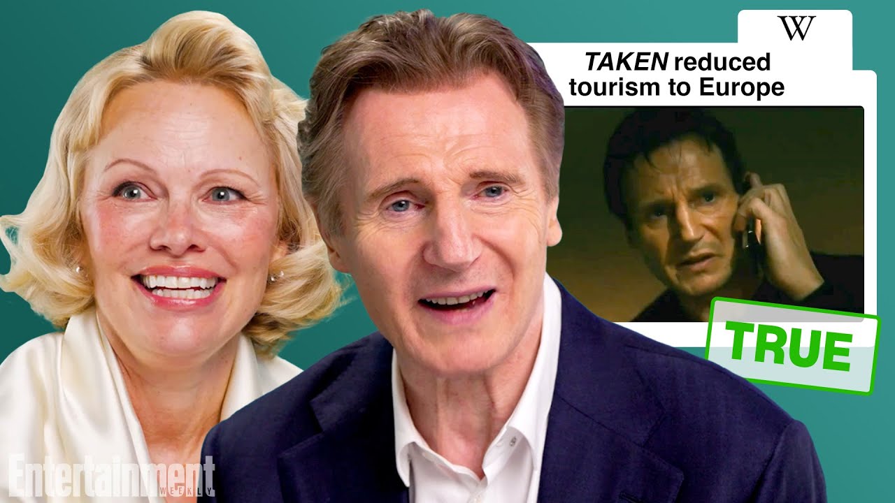 Pamela Anderson and Liam Neeson chit chat to fact check their Wikipedia, IMDb, and much, much more.