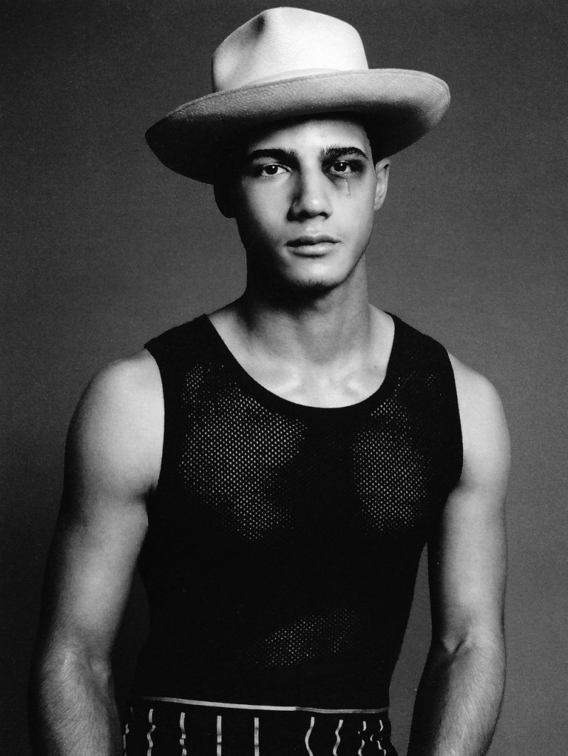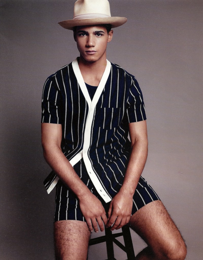 Stripes & Patterns–Styled by Francesco Sourigues in pieces from Dolce & Gabbana and Neil Barrett’s spring collections, Soul model Jordan Torres graces the pages of Hercules’ latest issue, captured in a studio in New York City by Paola Kudacki. Sporting with a spontaneous ease the spring trend of stripes, Jordan matches them with a see-through tank top or with a more playful printed silk shirt, while an ivory-tinted hat complete the looks. / Photography assistance by Clay Gardner and Yoo Sun Maru. Styling assistance by Adrian Manuel and Ben Perreira. Hair by Amy Farid. Makeup by Maki H. Courtesy of – Homotography