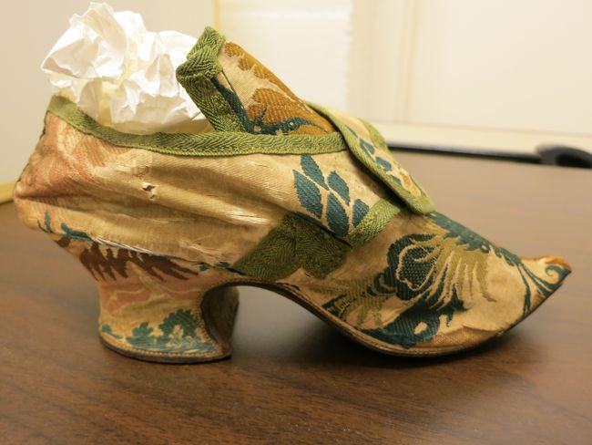 Today’s Monday Muse spotlights an exquisite piece of 18th‑century fashion history: a highly decorative, silk‑covered heeled shoe once worn by the wealthy elite. Both gents and ladies strutted in these ornate creations, signaling status, taste, and the era’s love of embellishment.