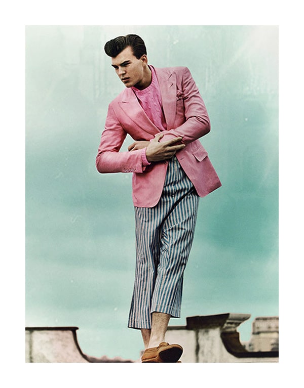‘Cool filters set the tone for Patrick Kafka’s laid-back photo session with the talented Sebastian Kim. The ideal image of relaxed luxury, Patrick revels in lush spring layers that take their effortless direction from labels such as Hermès and Gucci.’Fashionisto