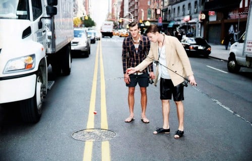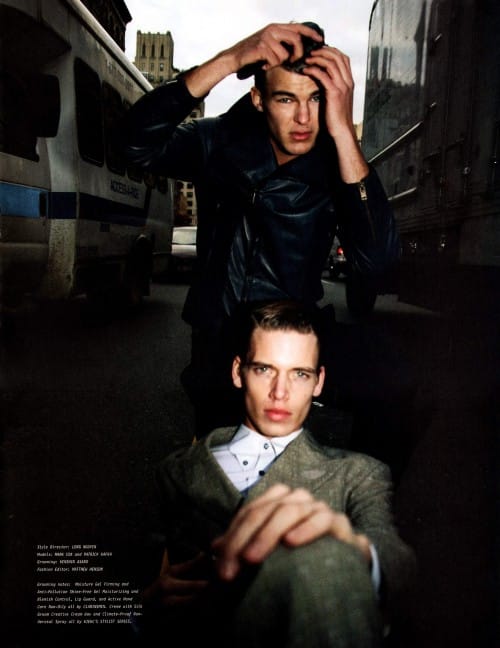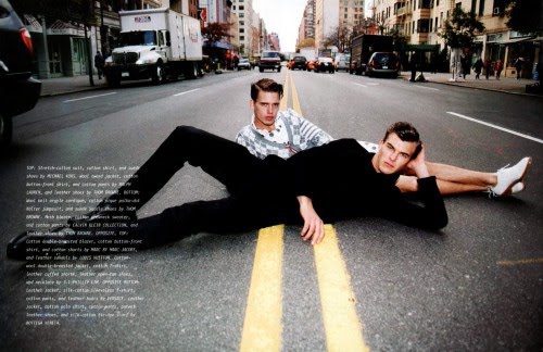 ‘Flaunt #107 finds Patrick Kafka and Mark Cox stuck at an intersection and trying to come up with fun ways to pass the time. Intersections is photographed by Sam Bassett and styled by Long Nguyen.’ Homotography