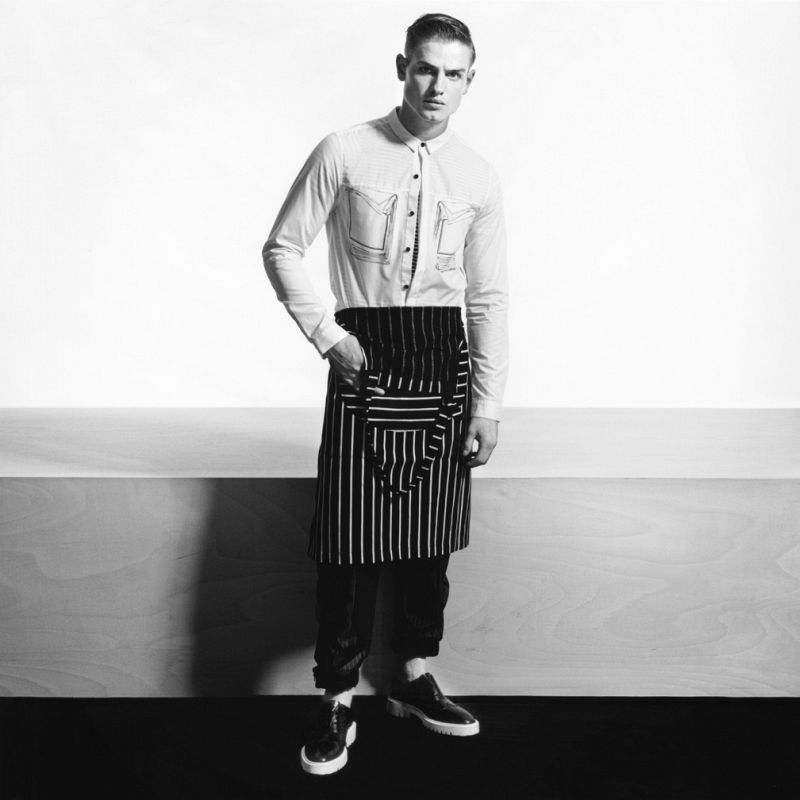 The Butcher–Patrick O’Donnell achieves a new look for Varón’s latest issue. Clad in aprons upon layers, the WhyNot model is photographed by Lonny Spence and outfitted by Hugo Lavin, who finds a little magic in the ordinary, turned out in a chic fashion. Courtesy of thefashionisto.com