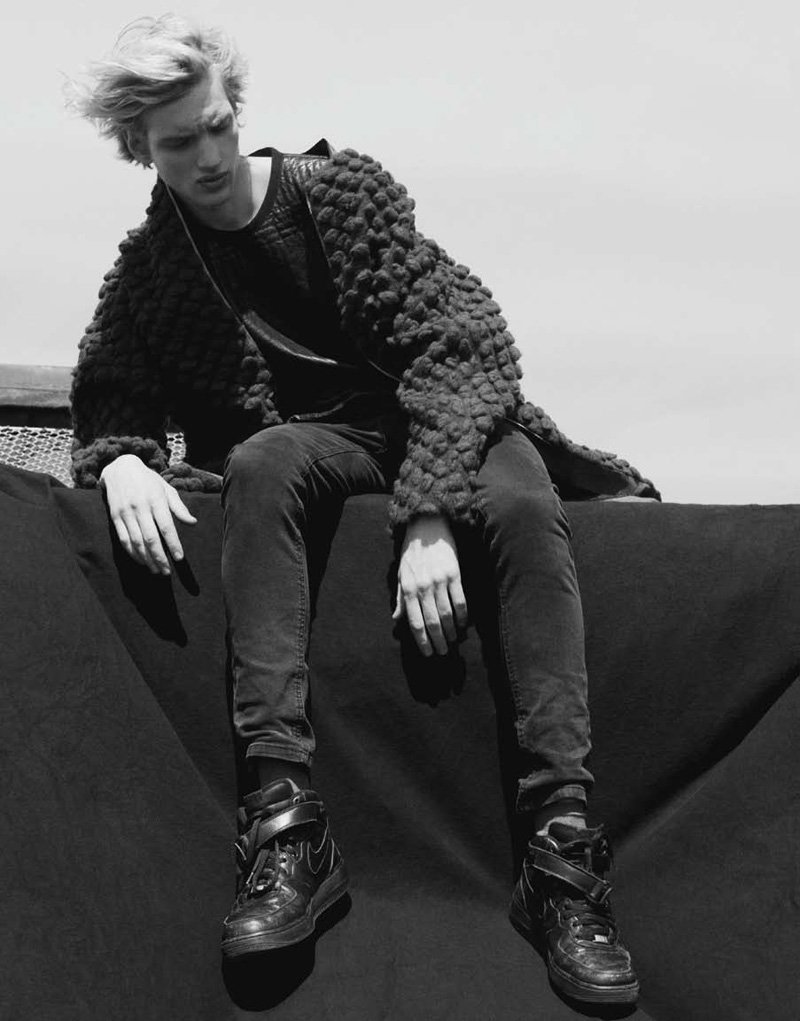 ‘econnecting with photographer Thomas Lohr for the latest issue of The Block, stylist James Worthington DeMolet achieves an intriguing edge with a mix of high and low garments. Fueled by a revival of the grunge aesthetic, garments from the likes of Burberry Prorsum and Thom Browne are blended with a casual selection that includes American Apparel. Bringing their own personality to the shoot, Paul Boche and Caleb Addison revel in the spirit of disillusionment.’ – Courtesy of thefashionisto.com