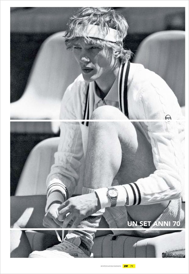 “Supermodel Paul Boche teams up with fashion photographer Adriano Russo for Un Set Anni 70 story coming from the pages of Sportweek Magazine‘s latest edition. In charge of styling was Irene Traina, with grooming by Astor Hoxha.” – Malemodelscene.net