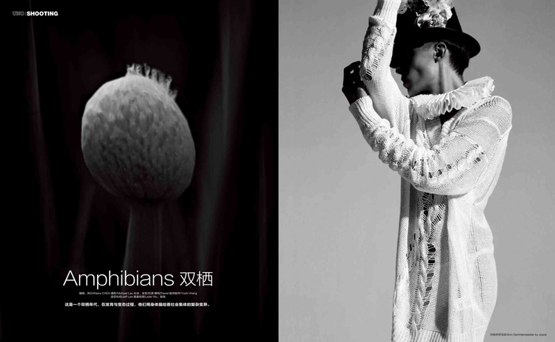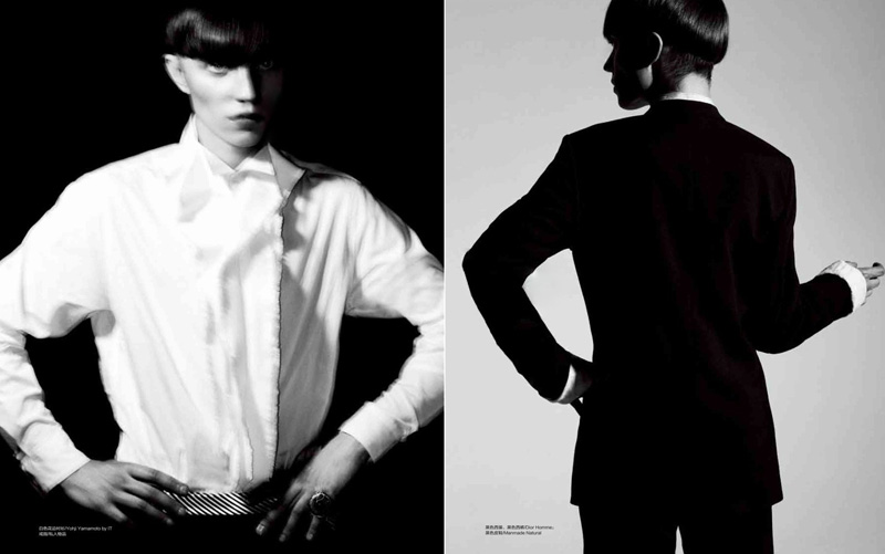 Offbeat Ways–Newcomer Pawel Gralevitz stars in a new editorial for Chinese magazine Men’s Uno. Photographed by Michael Lau, Pawel is outfitted by Yuanyi Jeff Lee. Inspired by Amphibians, Pawel delivers wonderful zany lines as he’s captured in a wardrobe of modern pieces. / Makeup by Liu Xiao. Courtesy of – thefashionisto.com