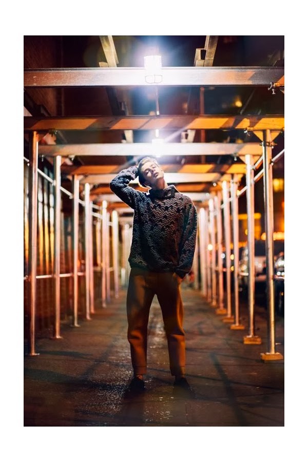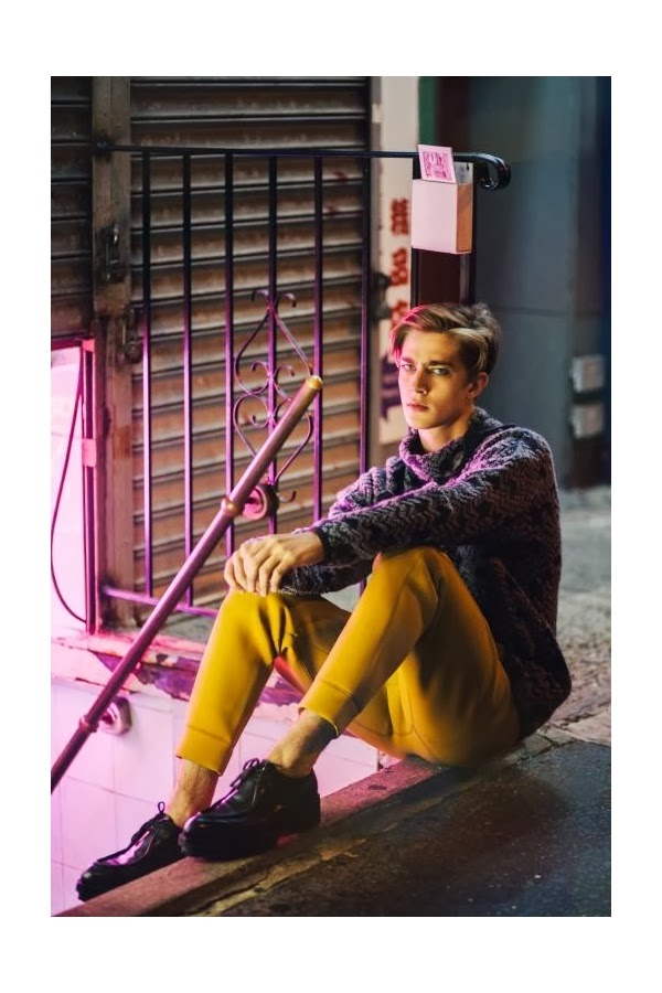 Lost in Translation–Model Pedro Bertolini connects with photographer David Urbanke for a story in the latest issue of Vaga magazine. Shooting in Chinatown, New York, Pedro is captured in sleek winter styles that range from a slim pinstripe suit to a bedazzled dress shirt.