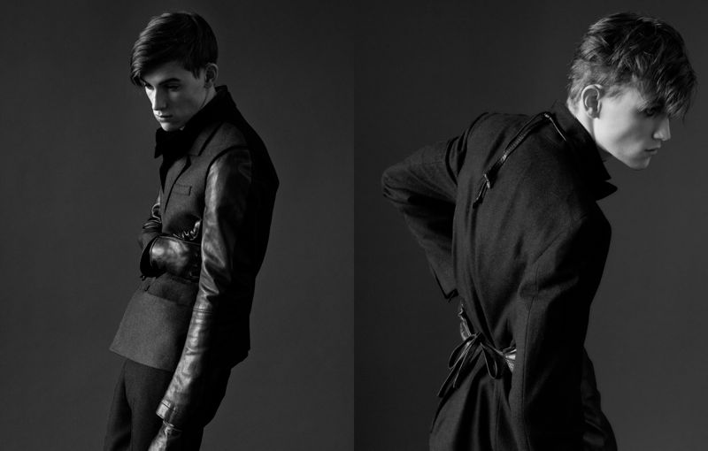 Slick Poise–Photographer Biel Parklee captures Red Citizen model Peter Sikorski in a monochrome photo shoot as he’s dressed in slender outerwear and trousers as styled by Gerriott. / Make up by Nicole Williams. – Courtesy of thefashionisto.com