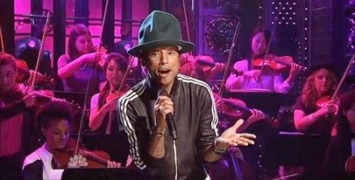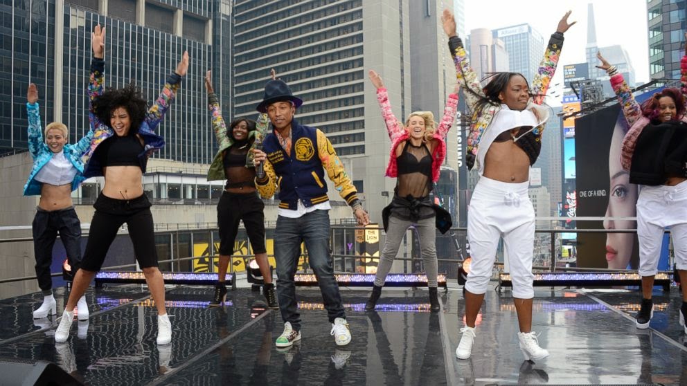 Lets pause and sit back for this musical moment below. Appearing on such talk shows at Wetten Dass and as most recently as today on Good Morning America, catch all of Pharrell’s sweet-sweet melodies performing both inside and outside the Times Square studio!