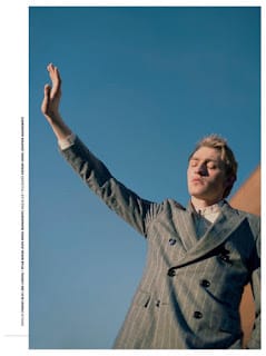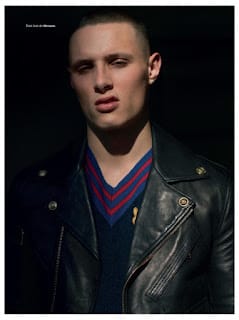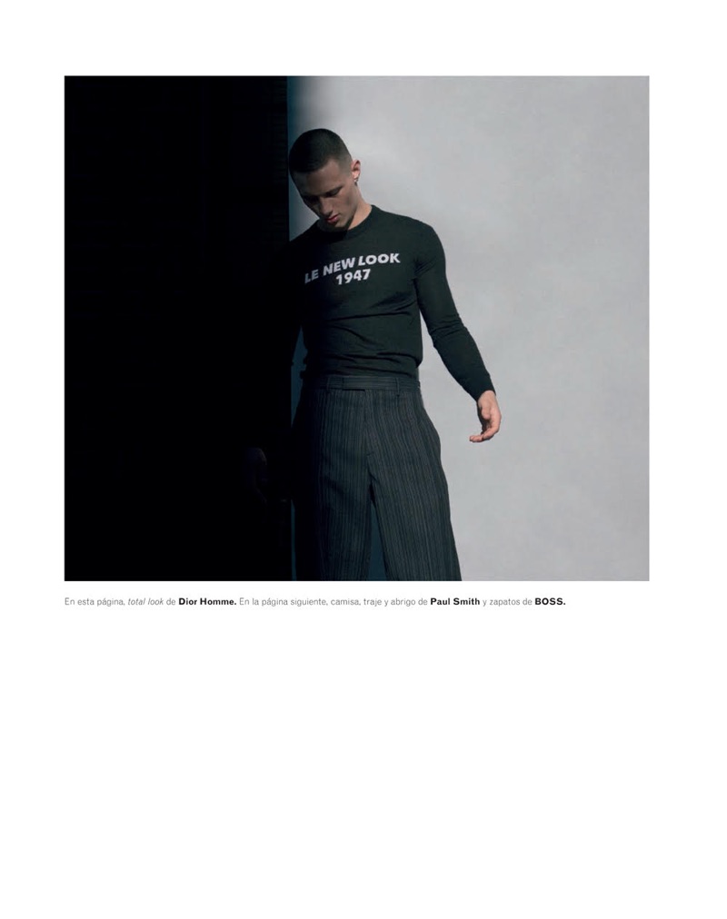 Phoenix Blu and Dylan Moran steal a series of quiet moments for the December 2018 issue of Esquire España. Photographer Onin Lorente captures the models for a story entitled “Lucha Callejera.” Casual and formal fashions collide for the shoot with styling by Christopher Preston (Eighteen Management). Dylan and Phoenix sport everything from suits to cool pieces like the leather biker jacket. Featured brands include Versace, BOSS, and Paul Smith.” -thefashionisto.com